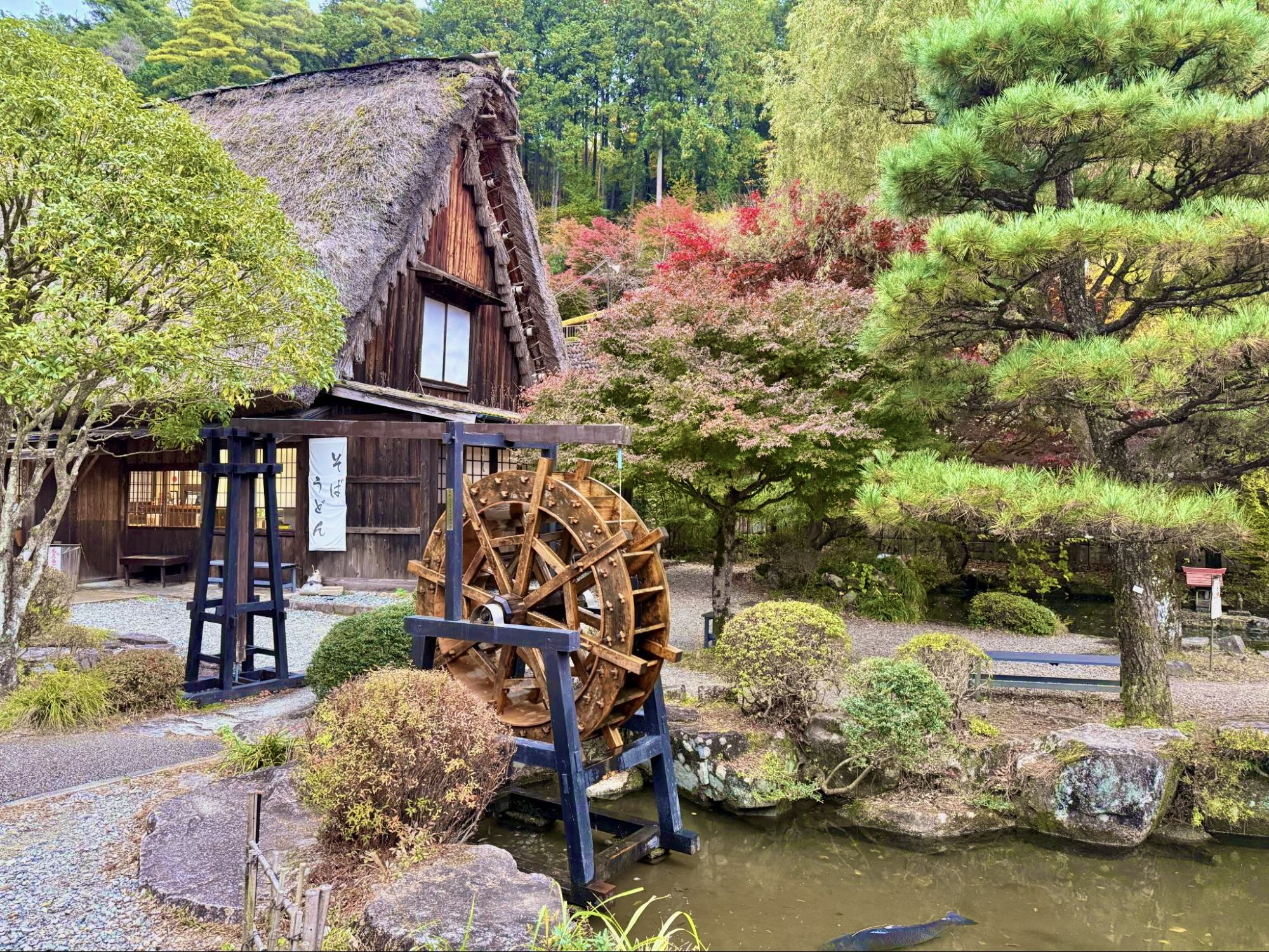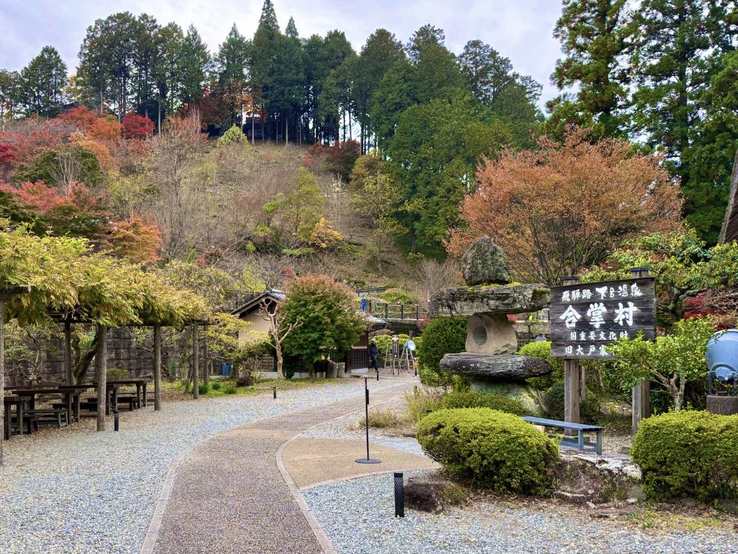 離開溫泉街的中心,車子往山腰方向前進,在一片靜謐的山林之間,傳來木頭與煙草的氣味,這裡就是「下呂溫泉合掌村」,讓人感受飛驒地區傳統生活的好地方。