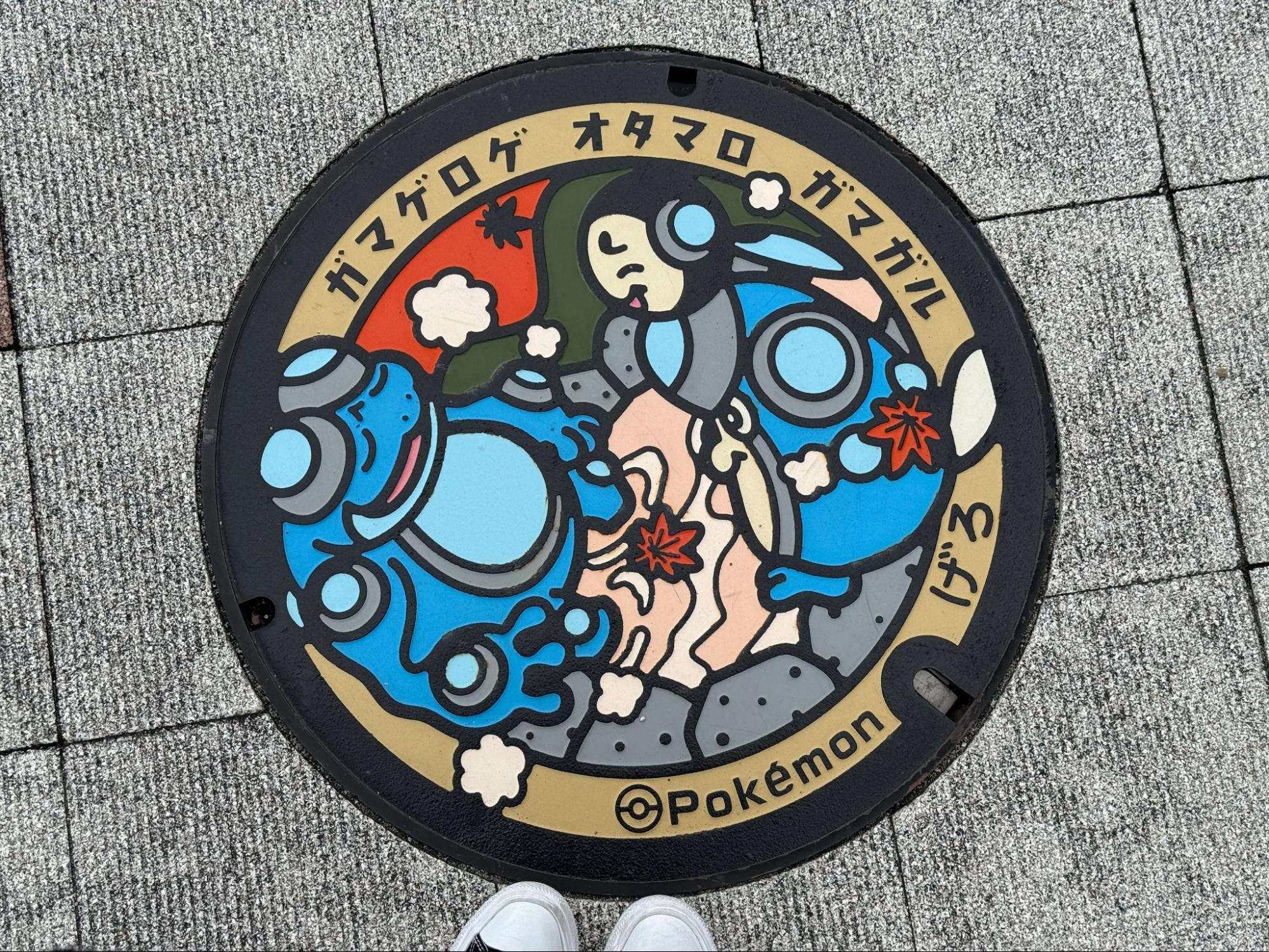 走到戶外廣場,還會驚喜地在地上看到圓圓的彩色圖案,是寶可夢 Pokémon 與各地合作的「寶可夢人孔蓋(ポケふた)」!下呂市也有屬於自己的寶可夢圖案,可愛又吸睛,不少粉絲會特地前來拍照,像是為旅程打開活潑又可愛的開場。