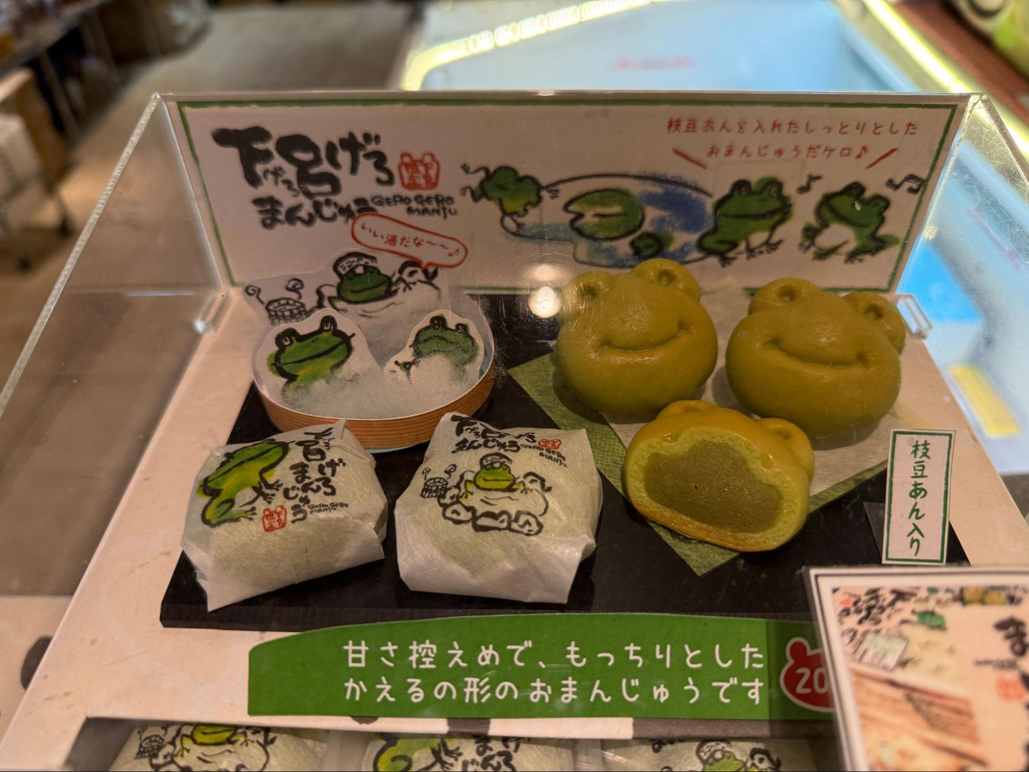讓人忍不住多看兩眼的,是可愛到讓人會心一笑的青蛙饅頭。圓圓的外型、帶點呆萌的表情,完全展現下呂獨有的青蛙文化。買來當作點心,或作為旅程紀念,都十分討喜。