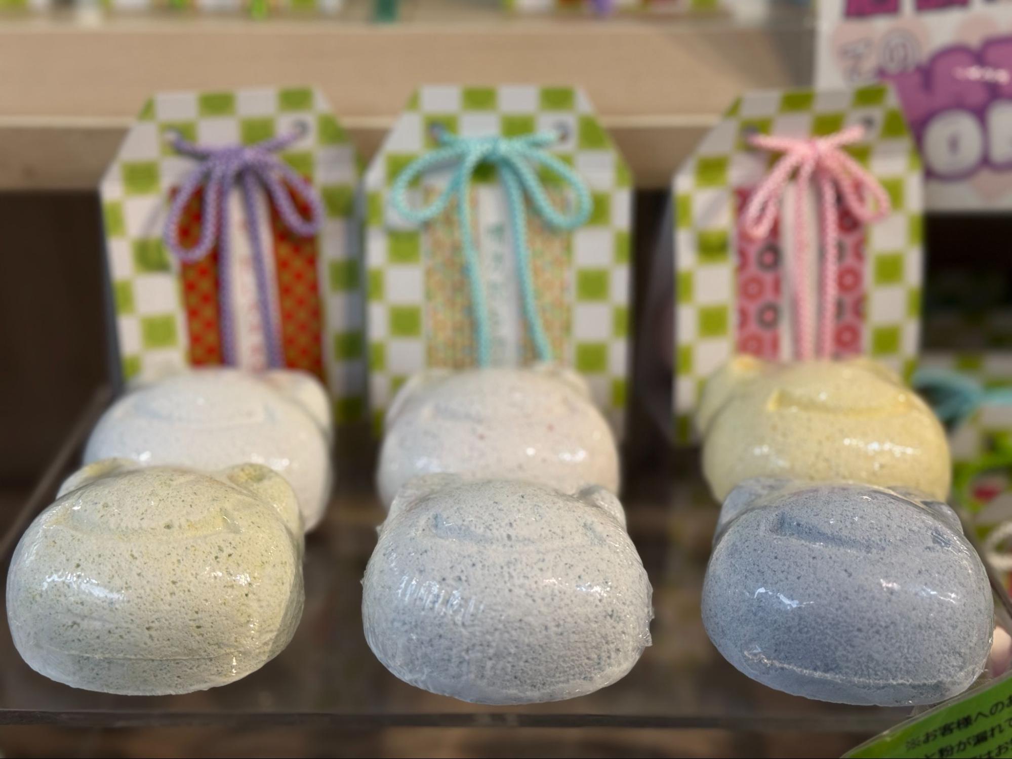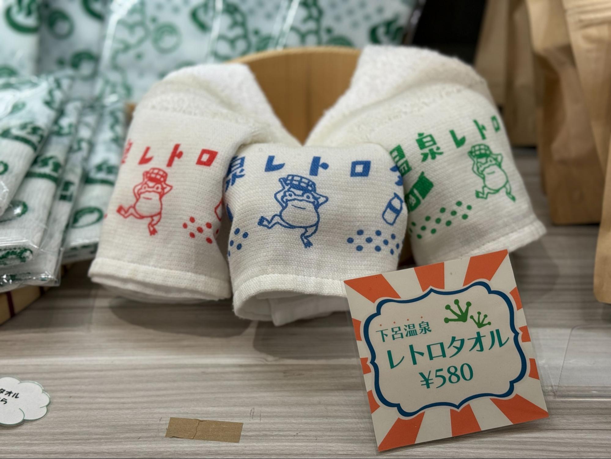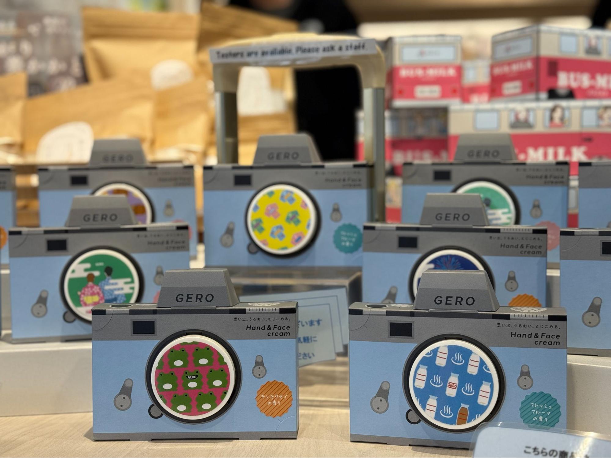 店裡以旅行為主題,有著下呂限定的伴手禮,種類眾多又可愛!行李箱造型的蒟蒻肥皂、相機造型的小物、印著青蛙圖樣的毛巾、外裝是御守造型的青蛙香皂、旅行風護手霜等,每樣都有著下呂專屬的幽默與可愛巧思,是旅程中採購伴手禮與紀念品的好去處。
