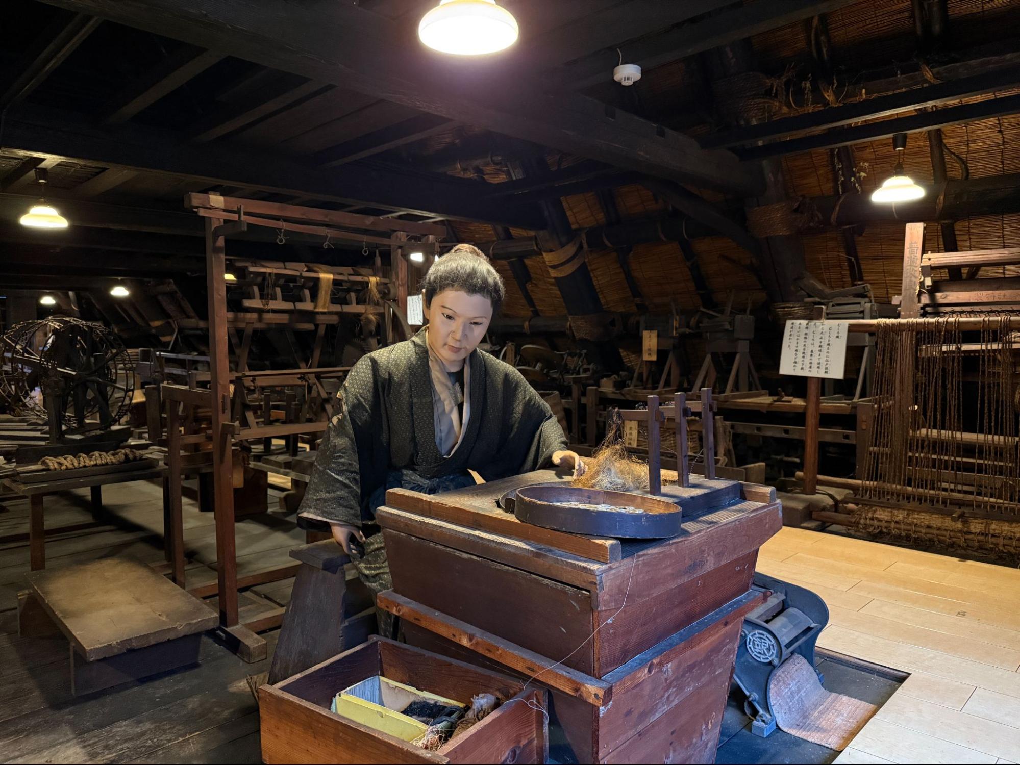 走進屋內,仍可看見炭爐、織布機與農具,空氣裡瀰漫著木柴與茅草的氣味。站在昏黃的燈光下,想像著百年前人們的生活節奏,緩慢而踏實。