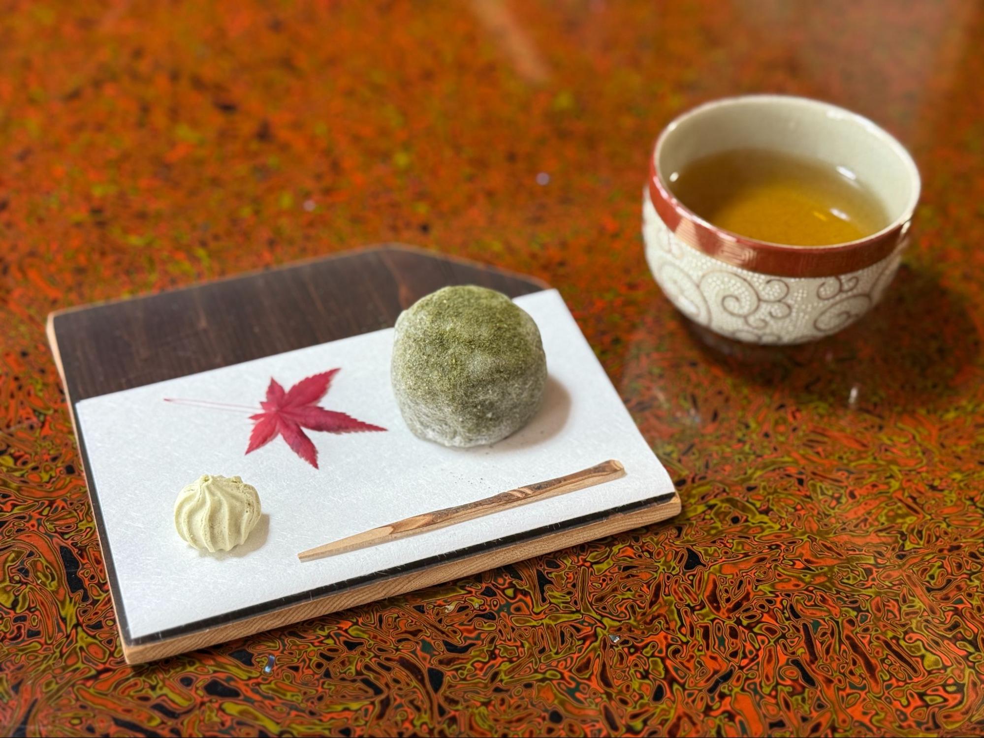 搭配裹著紅豆的抹茶大福,一口品茶、一口甜點,是旅途中簡單溫暖的小幸福。