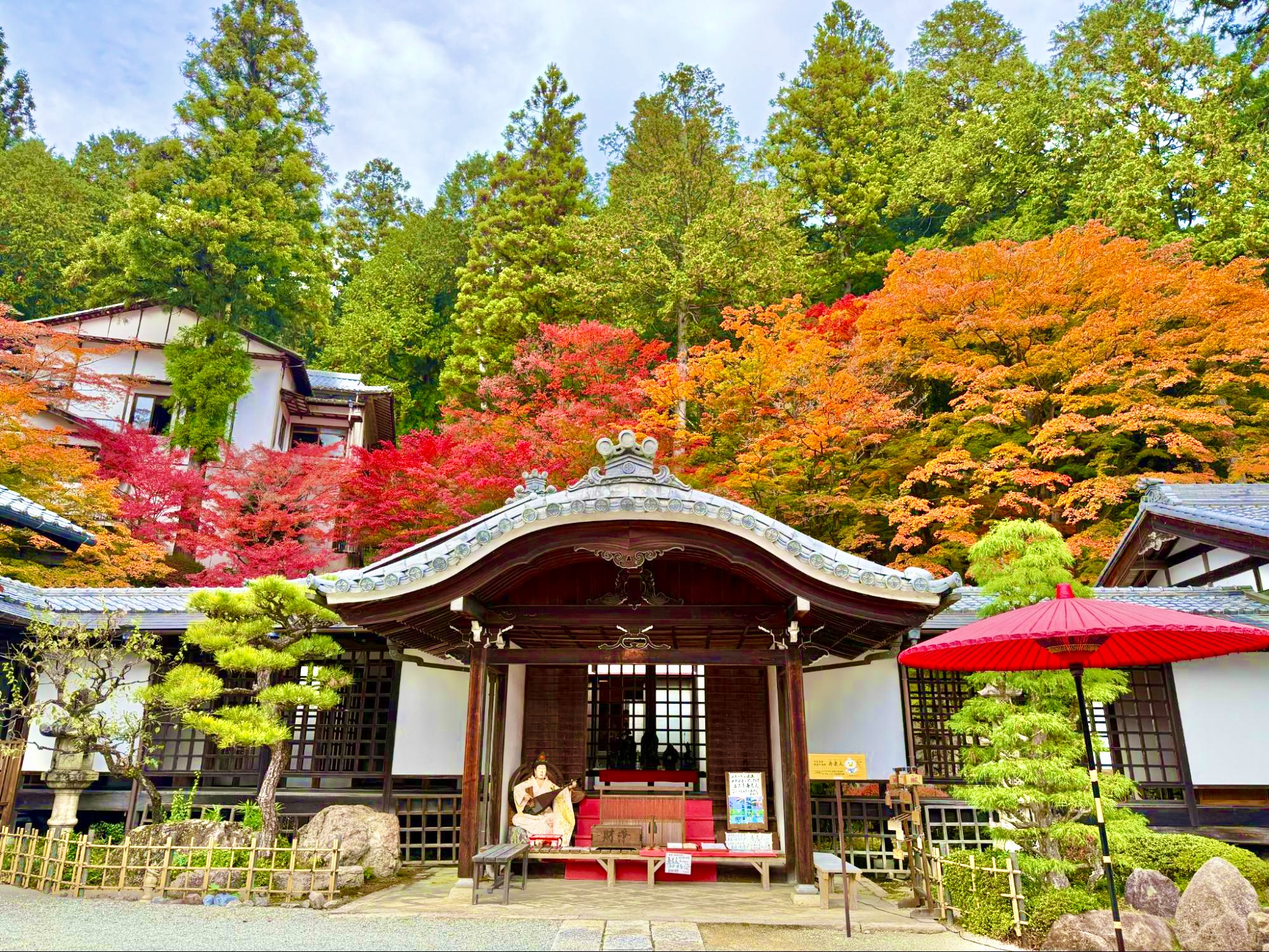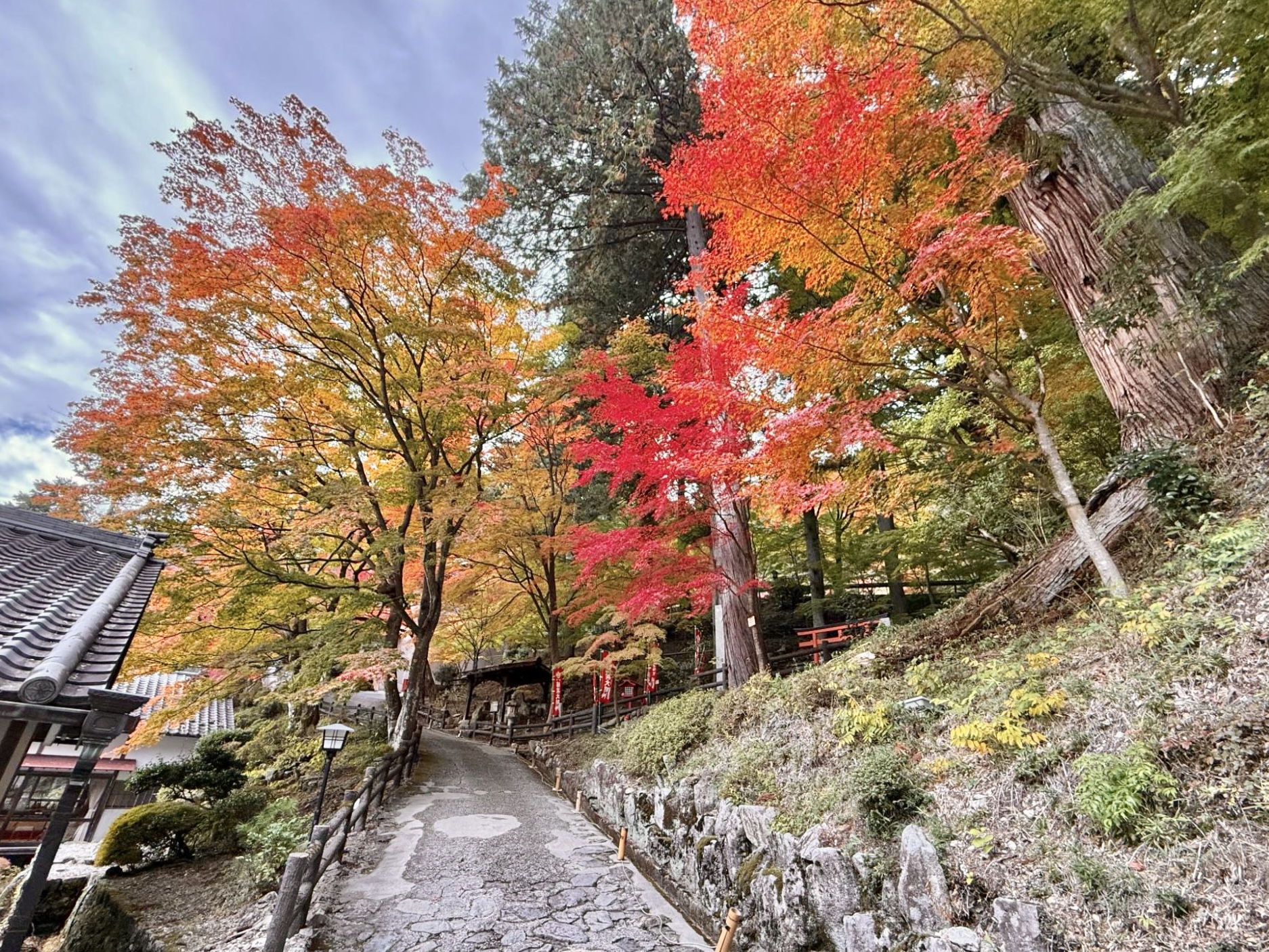 據說入夜後,寺內會舉行「紅葉點燈」,柔光映照在朱紅的山門與石階上,整座寺院變得寧靜又夢幻。在期間限定的「紅葉足湯」裡,可以一邊泡腳、一邊仰望被燈光照亮的楓葉與夜空,讓人不自覺地想,原來這就是名湯之鄉的心臟。