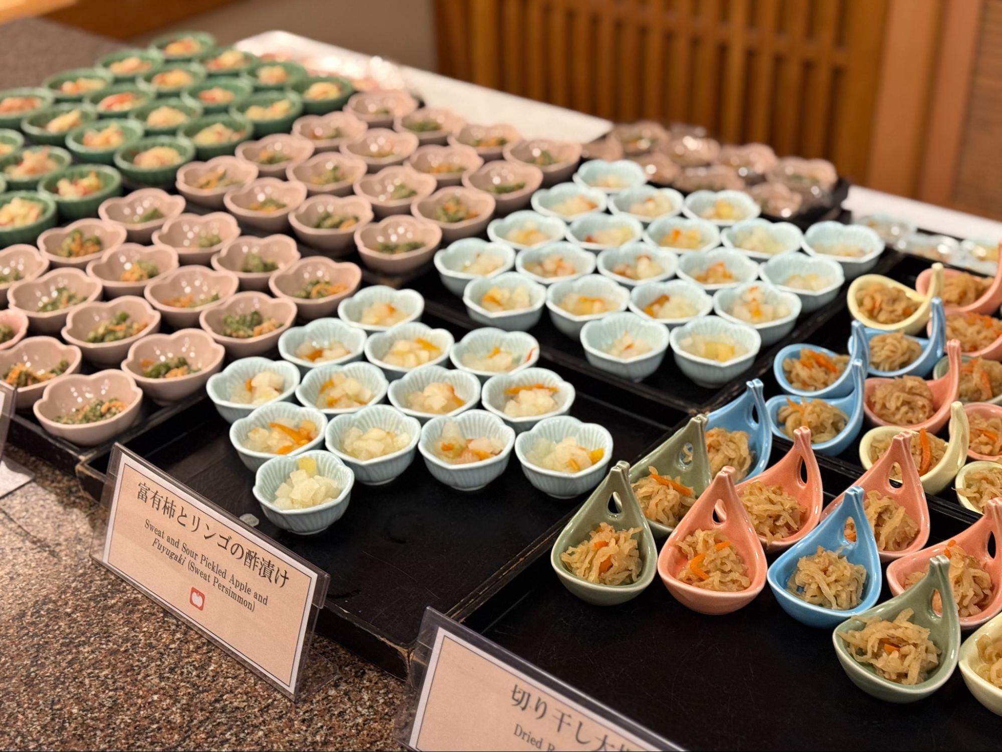 翌日早餐,則是在明亮寬敞的餐廳享用自助式料理。台前排滿各式和洋料理,現烤麵包、和風小菜、飛驒米飯、溫泉蛋、湯品與新鮮沙拉等,選擇多元,可以自行搭配喜愛的食材,為全新的一天準備好能量。