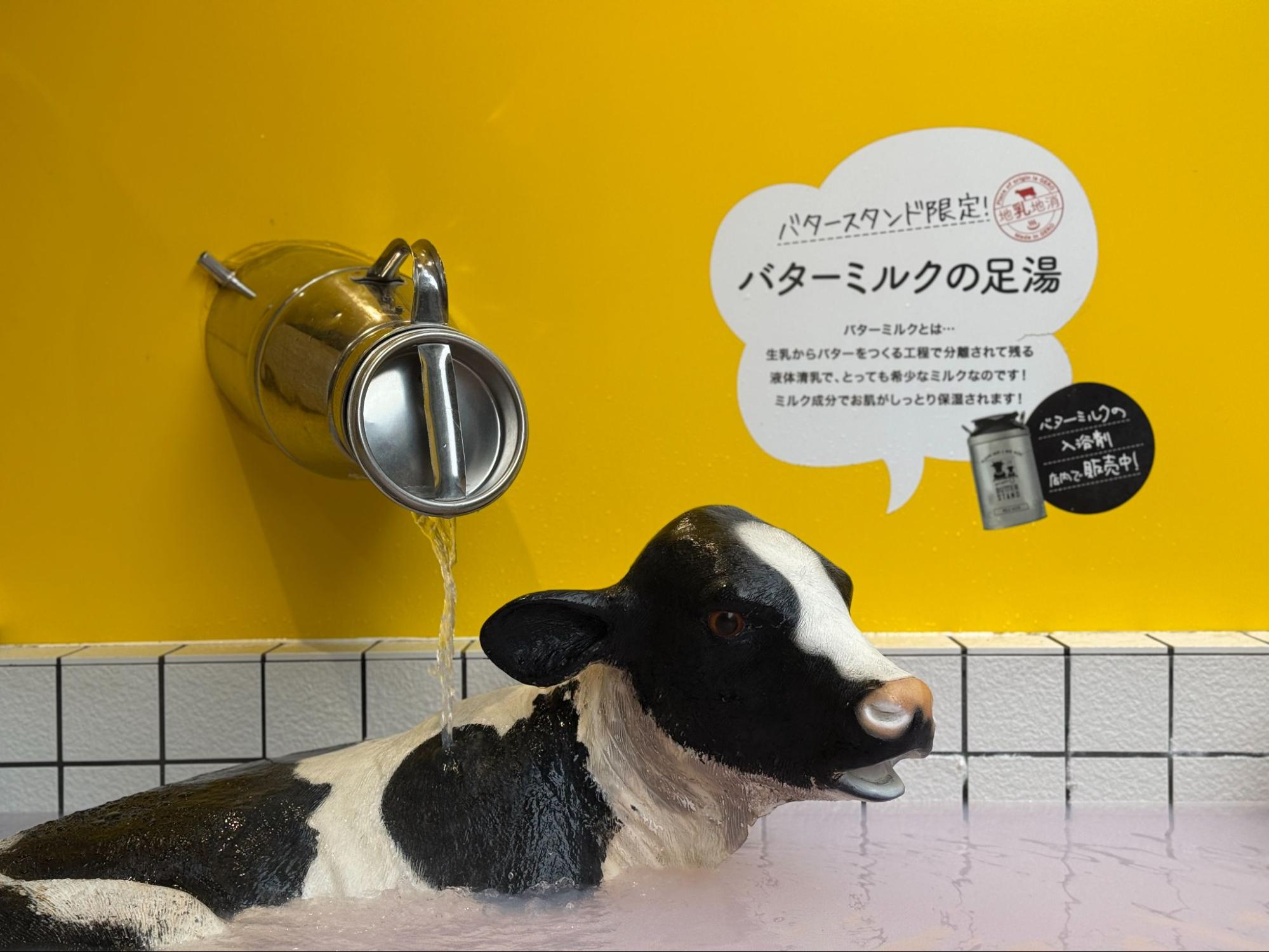 另一隻則泡在牛奶溫泉裡,可愛到讓人忍不住按下快門,是整條街上超吸睛的存在。