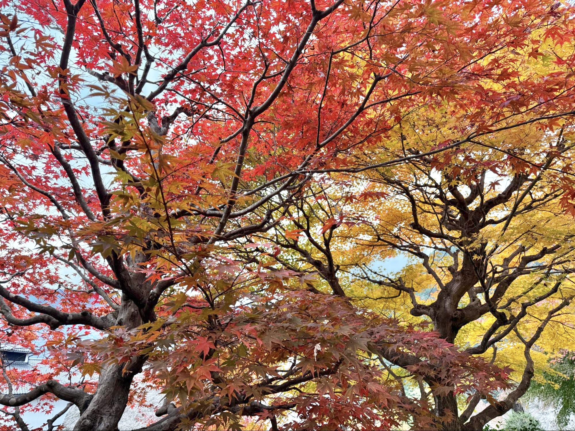 秋天時,整個合掌村被紅葉環抱,紅色、橙色、黃色交織,當風一吹,落葉輕輕飄下,絕美的景色讓人難忘。