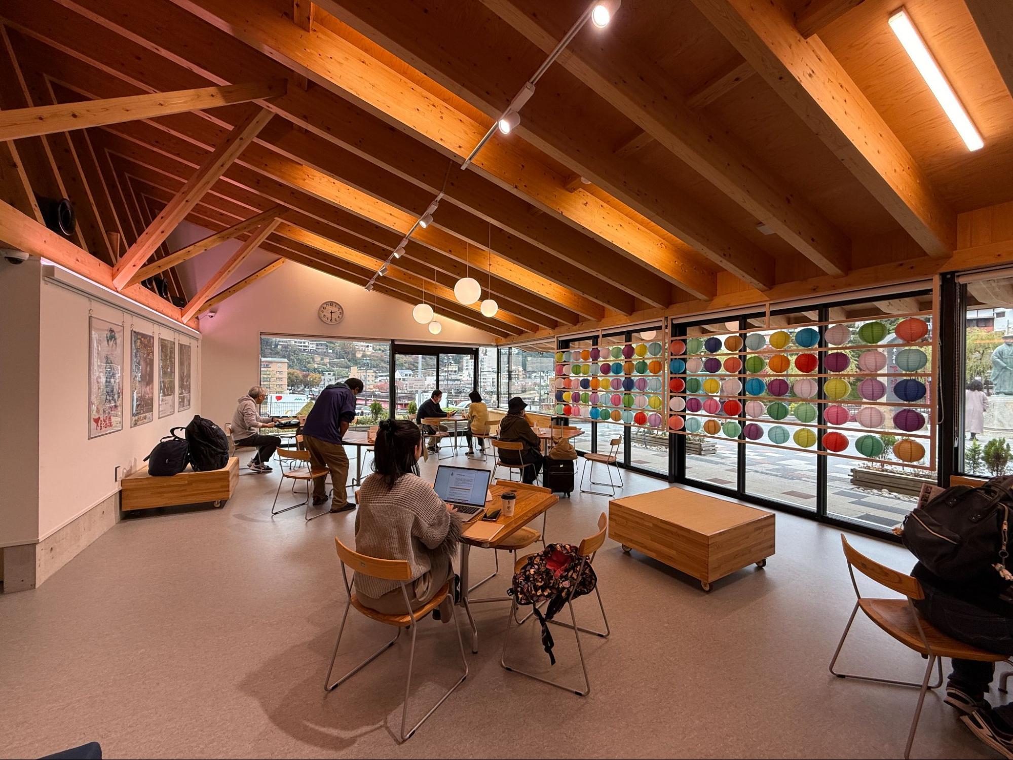 明亮的空間裡有舒適的座位,可以在此歇腳,或者研究接下來的旅行方向。館內也有展示地方文化與旅遊資訊,內容相當豐富。走到館外,不妨看看「旅途回憶黑板」,旅人可以在上面留下到訪下呂的足跡,是很有趣的小互動。