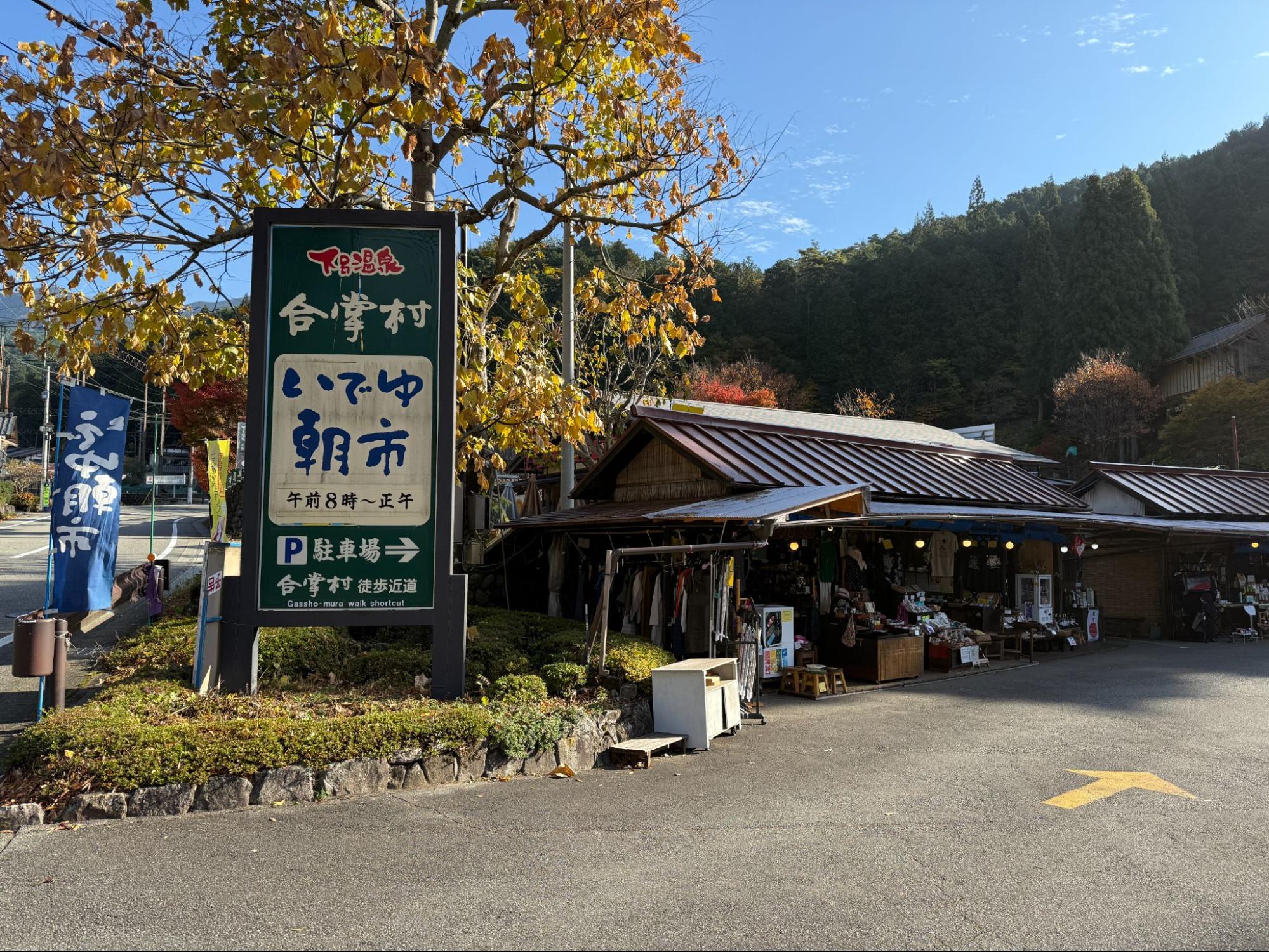 早餐過後,驅車前往「出湯朝市(いでゆ朝市)」,這裡同時也是通往「下呂溫泉合掌村」的入口之一。小小的市集不大,都是可愛又親切的在地居民,攤主們親切地招呼著,販賣的是樸實的生活。精神矍鑠的爺爺奶奶們,雖然年長但身手俐落,笑容也像陽光一樣燦爛。