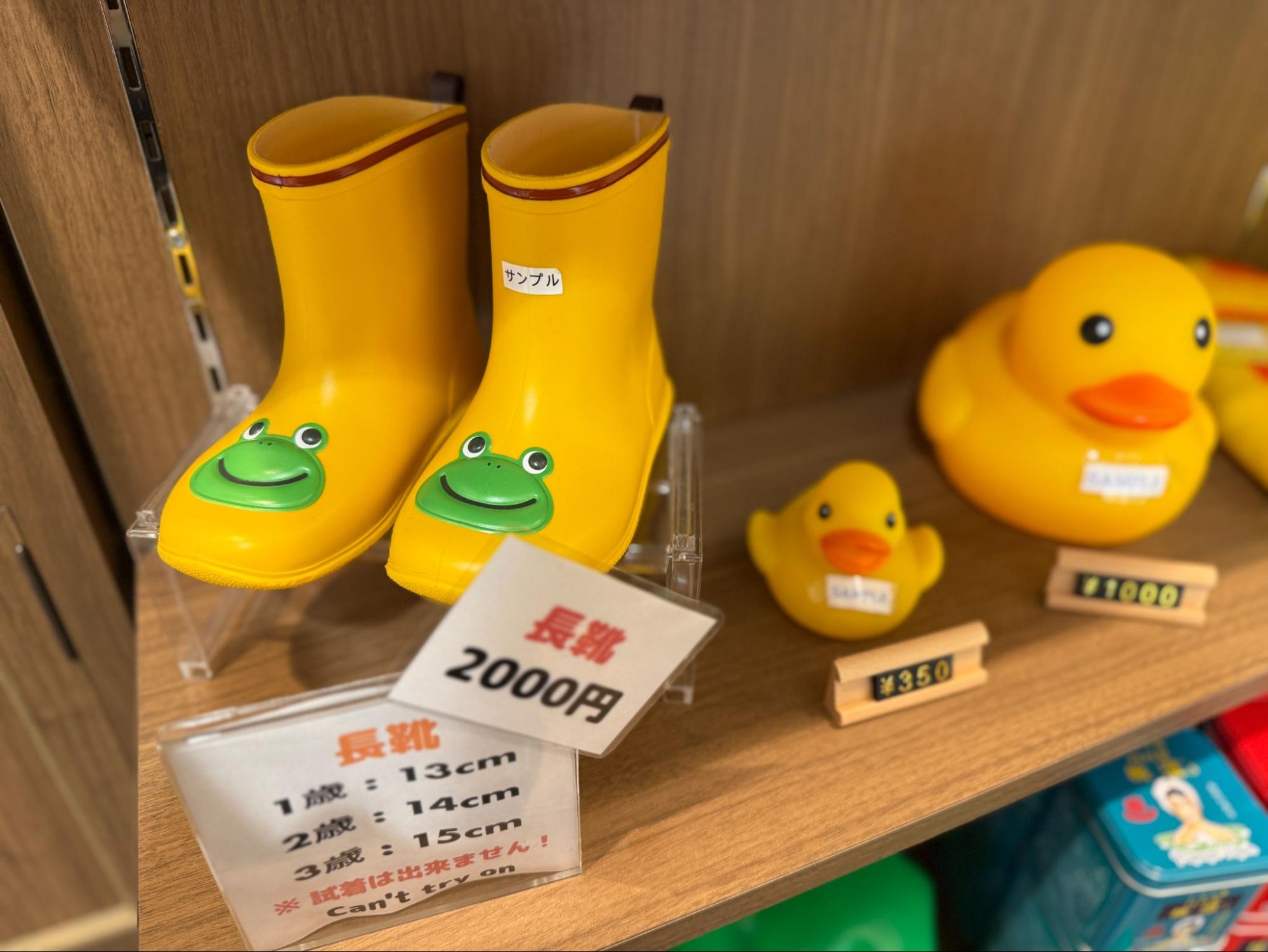 店內販售許多青蛙主題的周邊,像是青蛙小玩偶、小毛巾與帆布提袋,甚至還有泡澡小鴨鴨!每樣都可愛到讓人會心一笑,忍不住想全部帶回家。