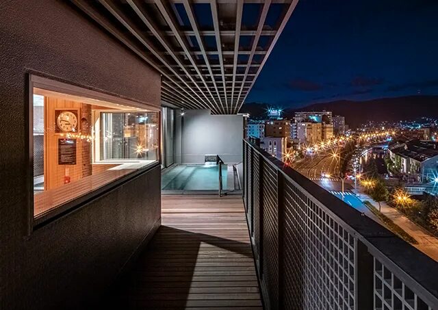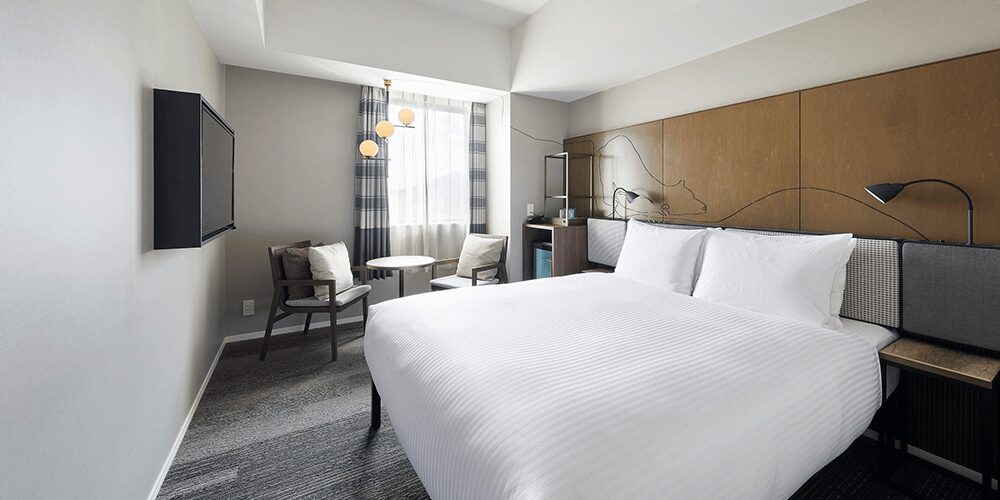 全館客房皆 24㎡ 起跳,打造出新一代的都市住宿標準。高樓層的溫泉 SPA(半露天+三溫暖)能在市中心享受城市 x 溫泉的雙重體驗。