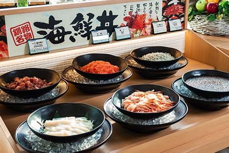 餐飲提供和洋中式超過 80 種自助餐料理,早餐還有受歡迎的必吃「自選海鮮丼」。