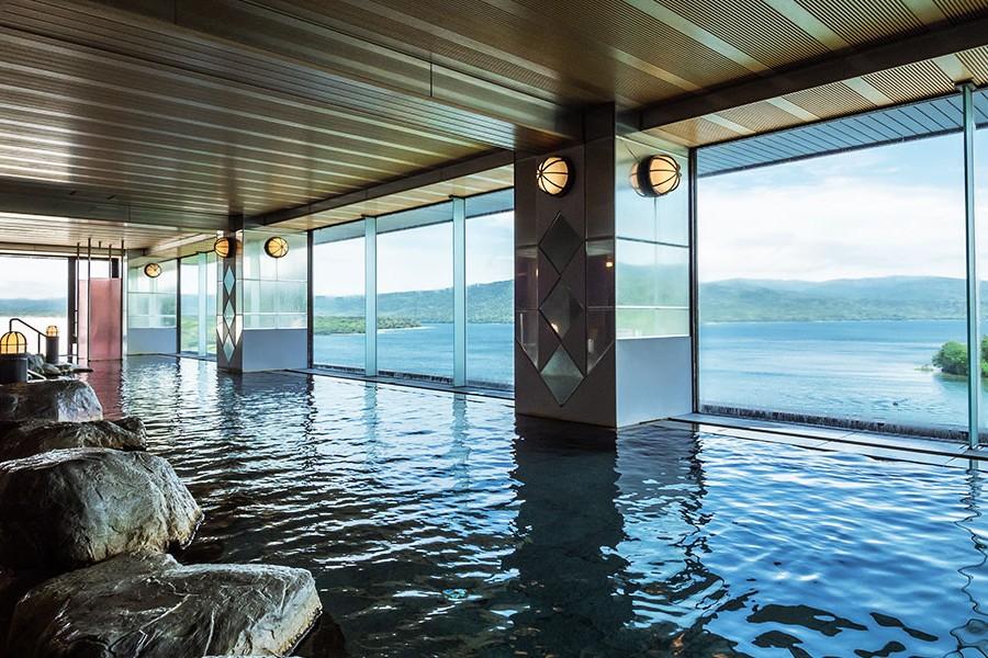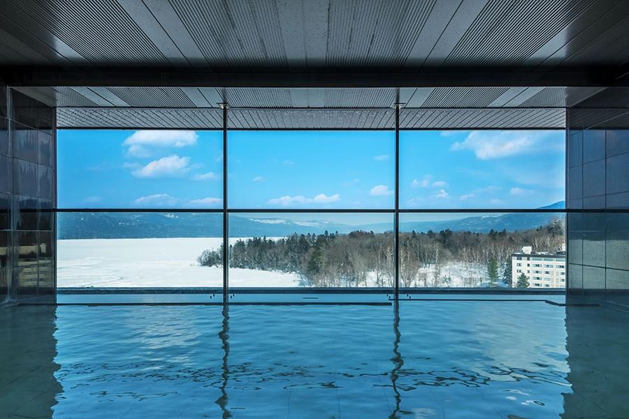 溫泉體驗更是一大特色,距離地面 30 公尺高的大浴場,可俯瞰阿寒湖與周邊大自然,視野氣勢十足。