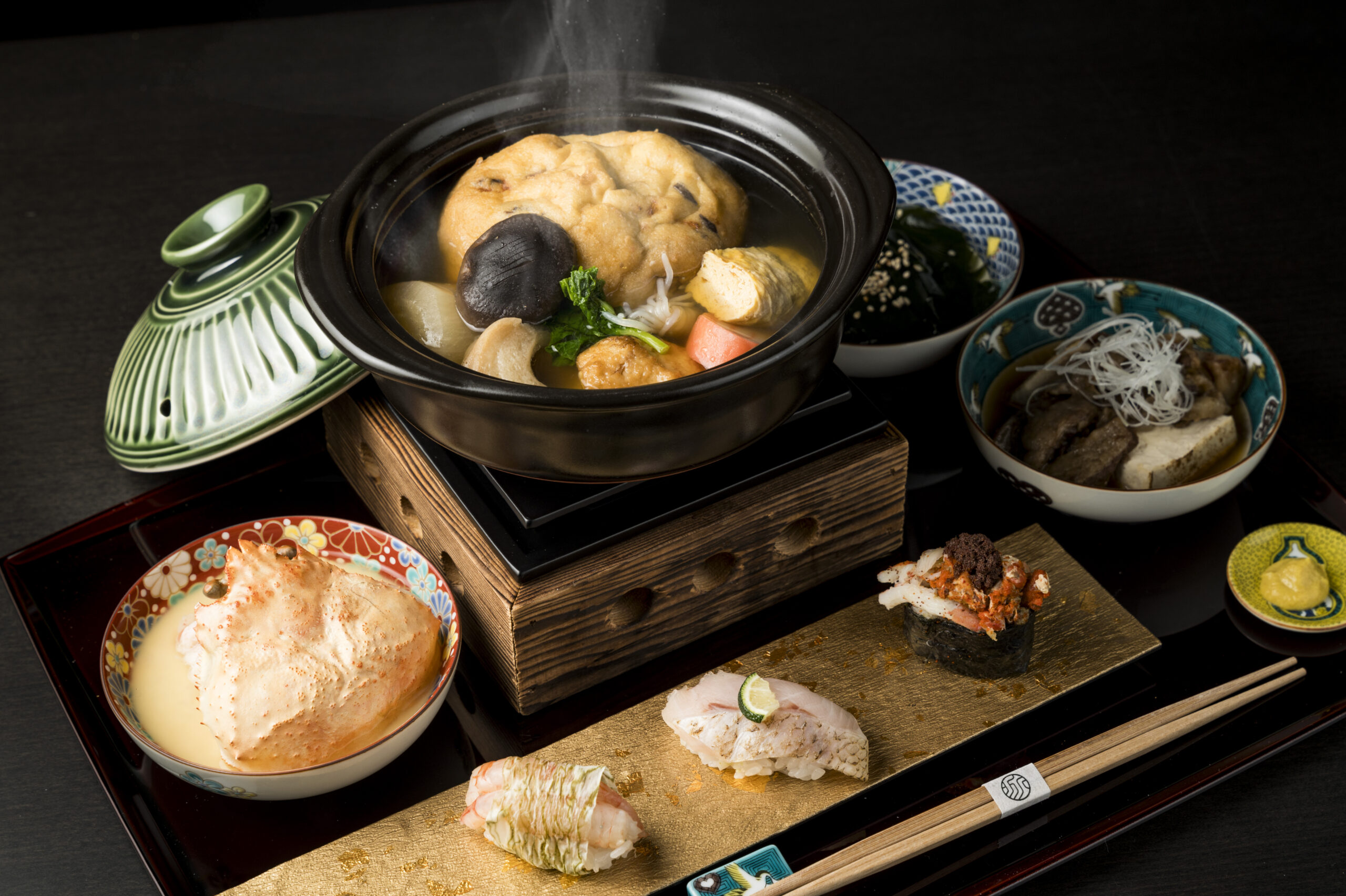 見城亭的料理選用近江町市場直送的新鮮海產,以及講究在地特色的精選食材。招牌菜為「金澤關東煮御膳」,以主廚特製的自家製魚板為核心,搭配細心熬煮、充分吸收高湯精華的關東煮,再佐以炙燒喉黑魚握壽司、甜蝦昆布締壽司,以及能登牛牛筋燉煮等多道佳餚,呈現一套豐富而豪華的御膳。