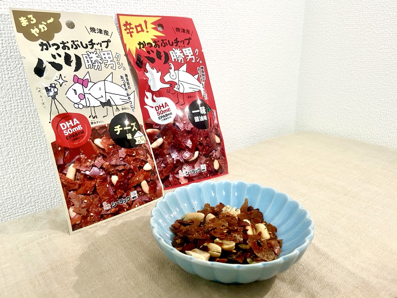 靜岡旅遊中的熱門伴手禮「香脆勝男君(バリ勝男くん)」,以鰹魚漁獲量日本第一的「燒津港(焼津港)」所捕獲的「柴魚(鰹魚)」為原料,加工成喀滋喀滋脆餅的零食。