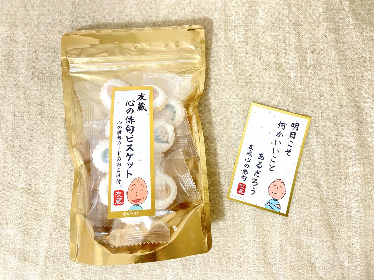 如果想尋找一份能讓人會心一笑、充滿童趣的伴手禮,以《櫻桃小丸子》中爺爺為主角的「友藏・心之俳句餅乾(友蔵.心の俳句ビスケット)」絕對是首選。