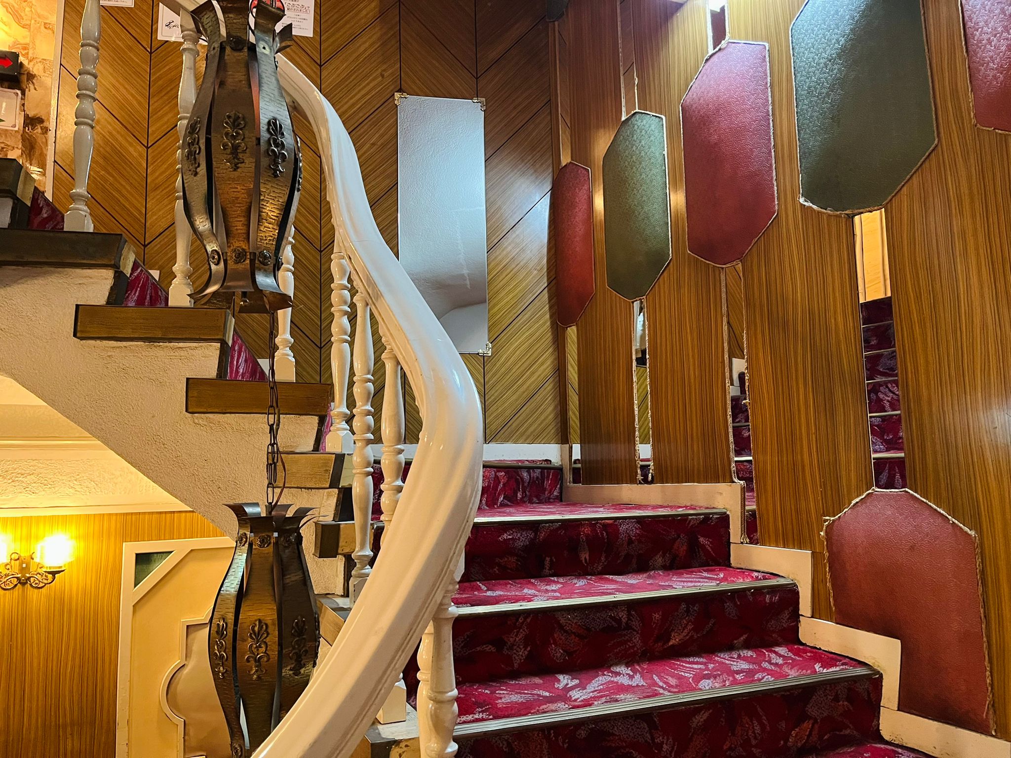 「HOTEL千扇(ホテル千扇)」是 HOTEL 富貴的姊妹店,兩店的距離不到一分鐘的路程。HOTEL 千扇旅館從 1 樓入口處的招財貓、年代久遠的指示牌,到樓梯間的全牆鏡面、精緻的欄杆雕工,以及 2 樓走廊保留的燈具,每個角落都完整保存著昭和時期的建築特色。一進入旅館就能感受到濃厚的昭和氛圍,走廊和樓梯平台的空間更因獨特的復古風格,常被攝影師選為拍攝場地。