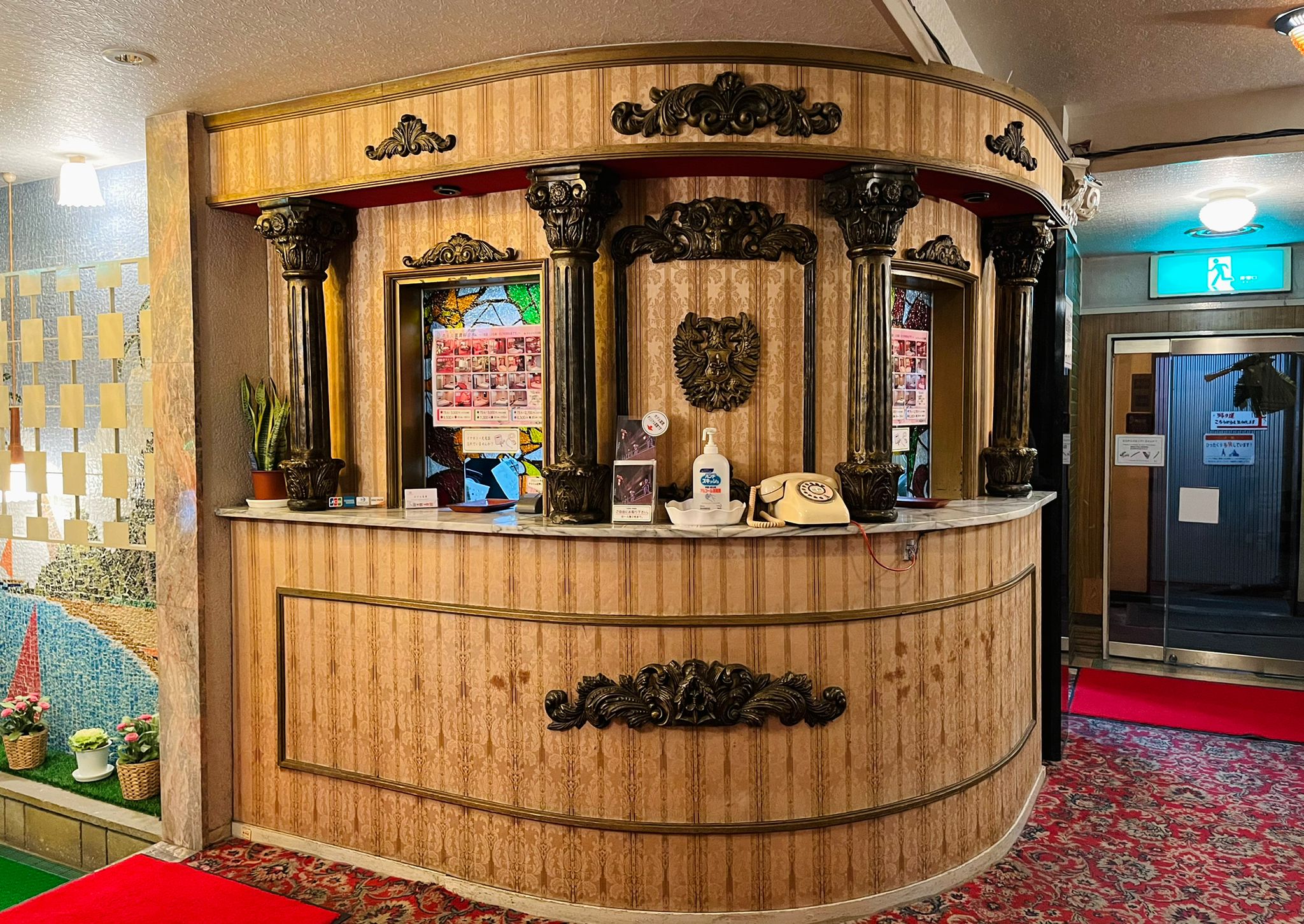 當你站在門口抬頭望向那帶著年代感的招牌時,會有一種奇妙的錯覺。這裡不像是通往某間「情趣旅館(ラブホ)」的入口,更像是一扇通往 70 年代的時光之門。霓虹燈管的光不再銳利,而是帶著微微暈開的輪廓;牆面不再平滑,卻因此多了時間留下的紋理。所有的不完美,反而組成一種現在幾乎看不到的真實感。