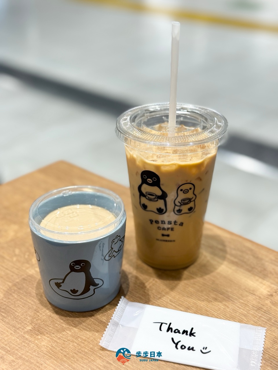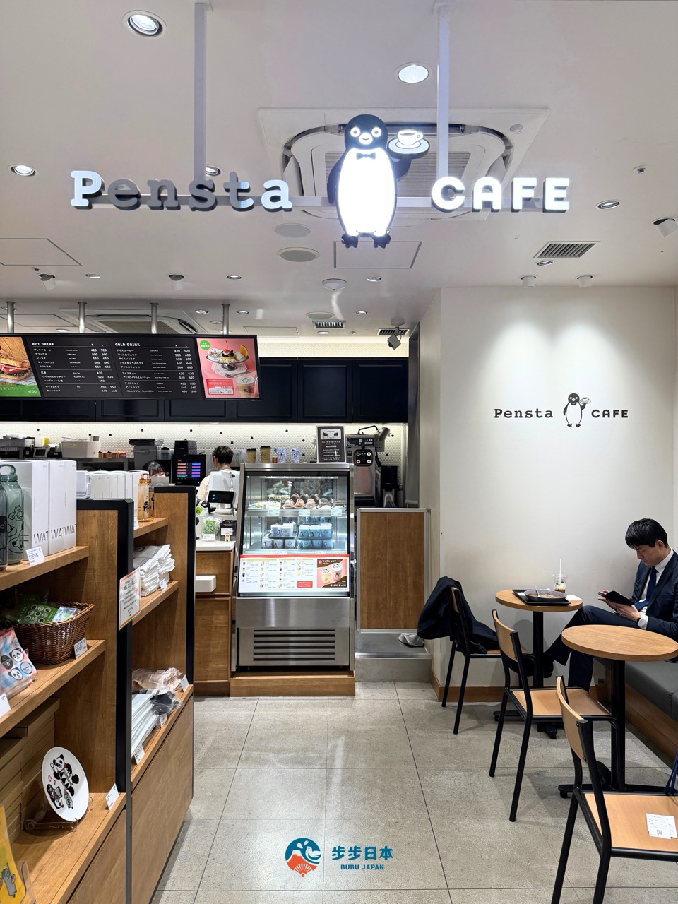 實際走進 Pensta,會發現這裡並不是常見附設在車站內的小型咖啡店,而是完整規劃的主題空間。店內分為咖啡廳區與商品販售區,兩個區域相鄰設置,可以坐下來點杯飲料、吃點甜點,還陳列著各式 Suica 企鵝周邊商品。即使原本只是利用轉車空檔進來逛逛,很容易不小心多停留,更會不小心就荷包失守!