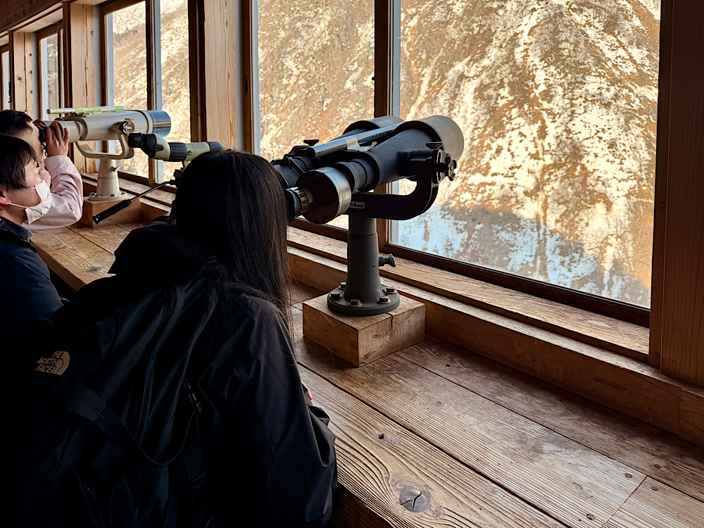 我們當天就很幸運地看到獼猴與日本鬣羚(日本カモシカ),在在雪壁上活動的模樣真的讓人印象深刻。