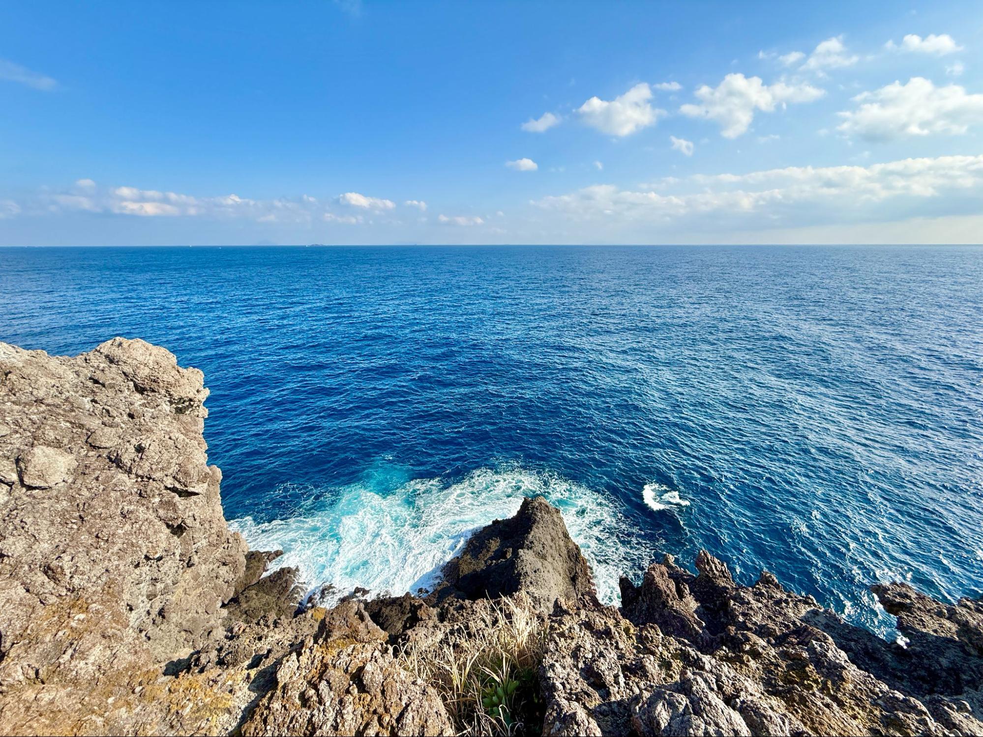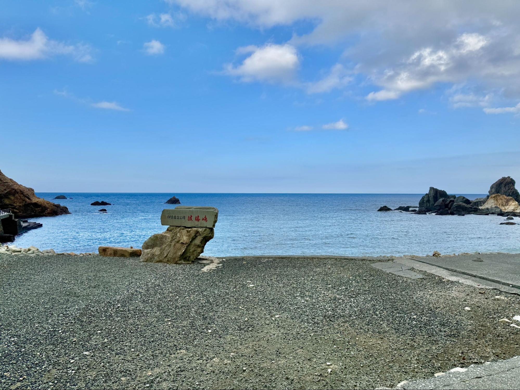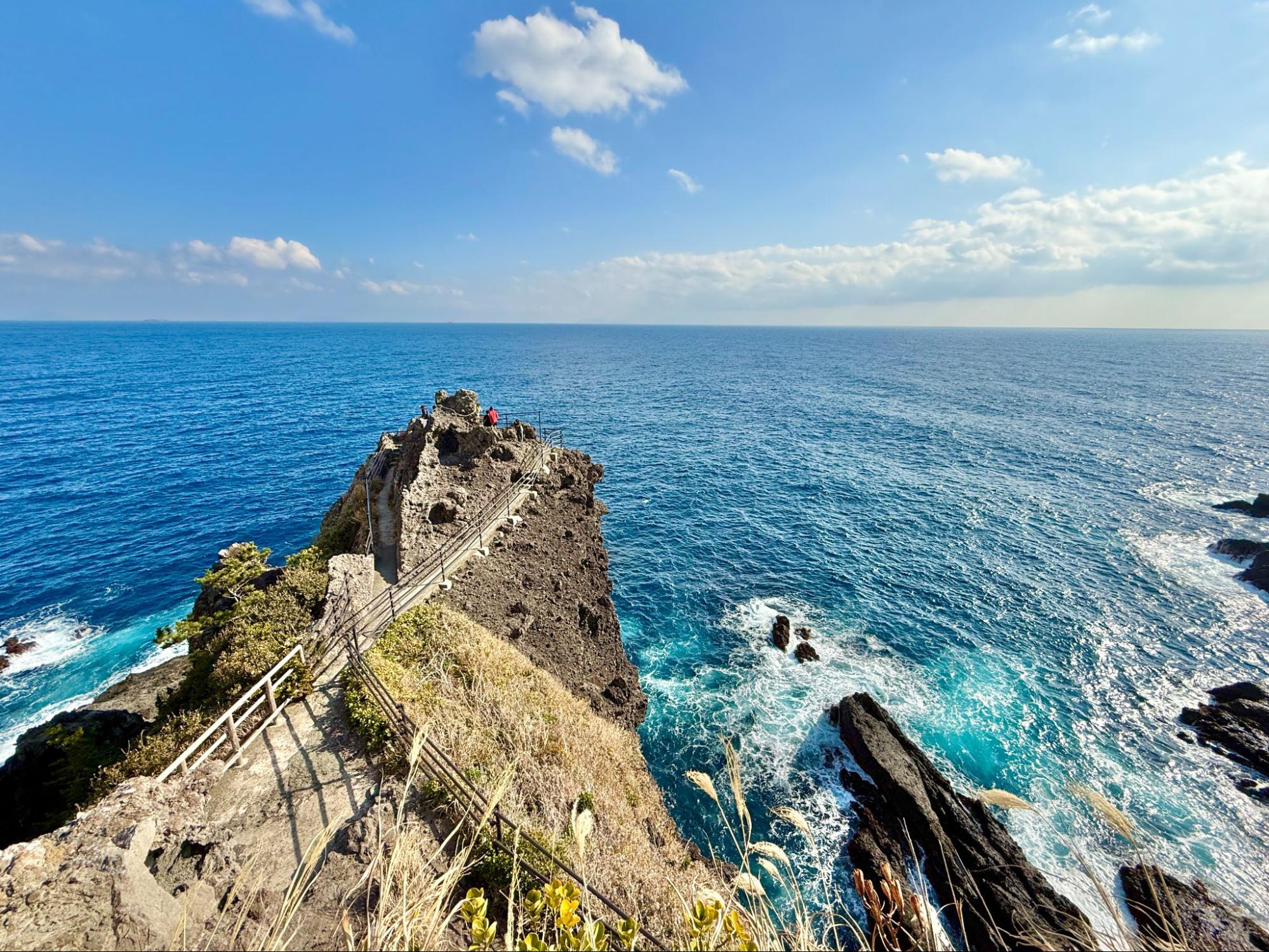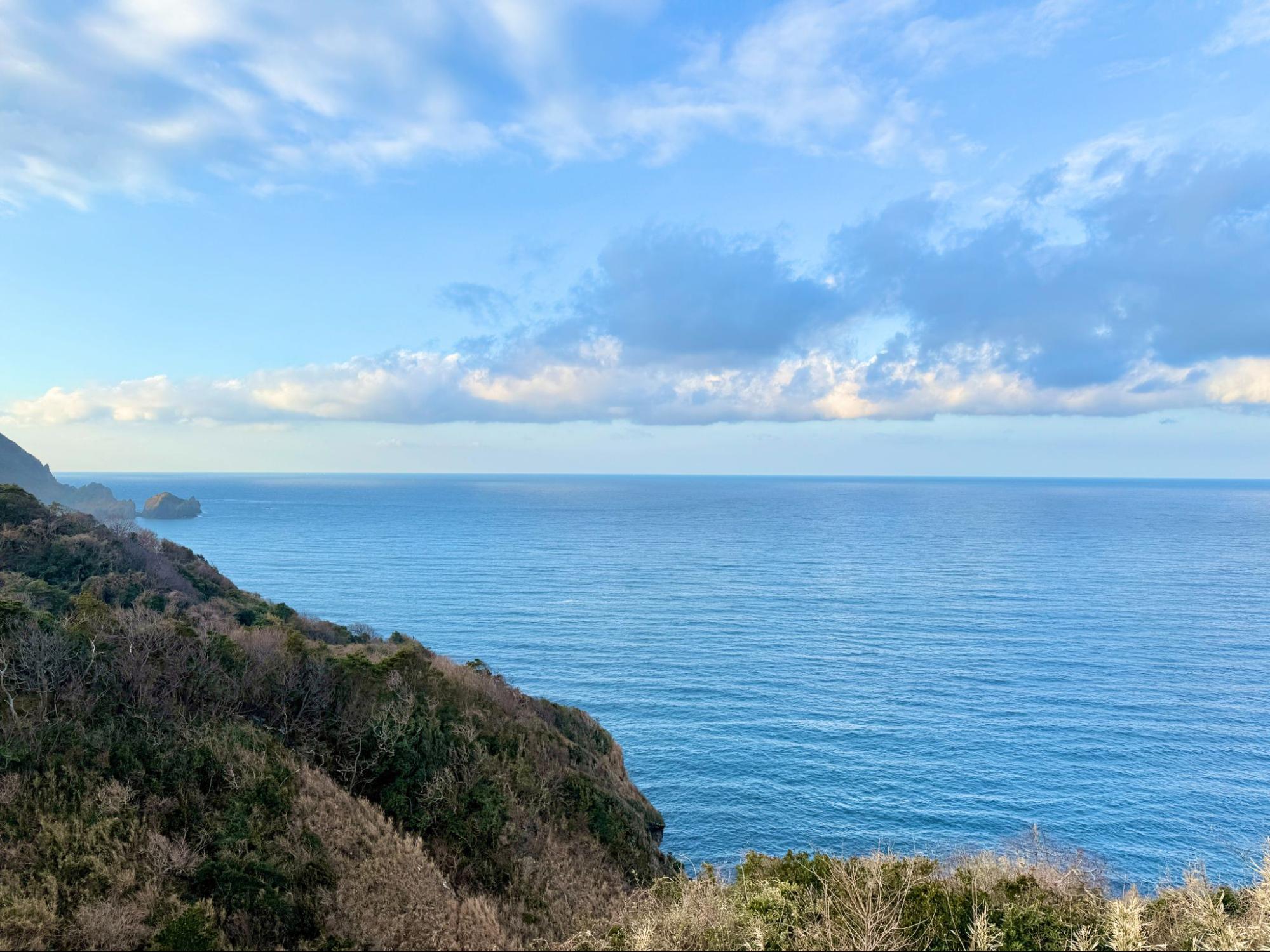 觀賞著大自然所形成的地形,心境也變得開闊。海平線筆直延伸,天空沒有遮擋,心中的煩惱在這裡顯得微不足道。或許這正是南伊豆海岸線的魅力,能讓人重新調整呼吸與生活的節奏。