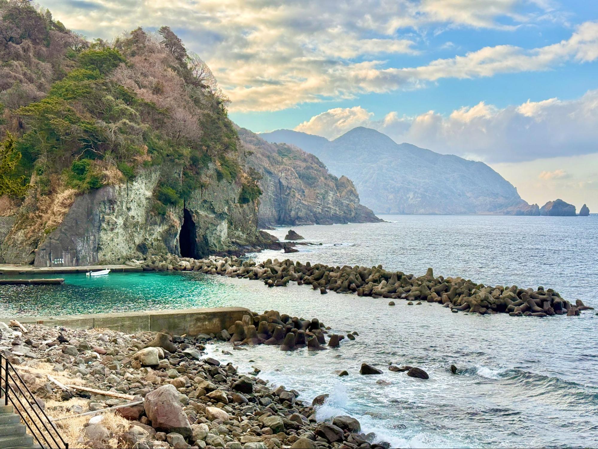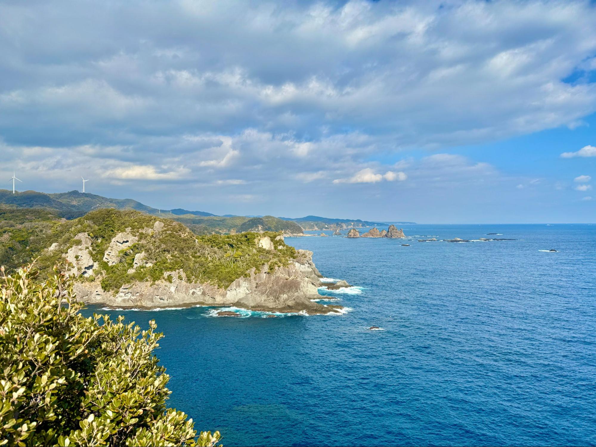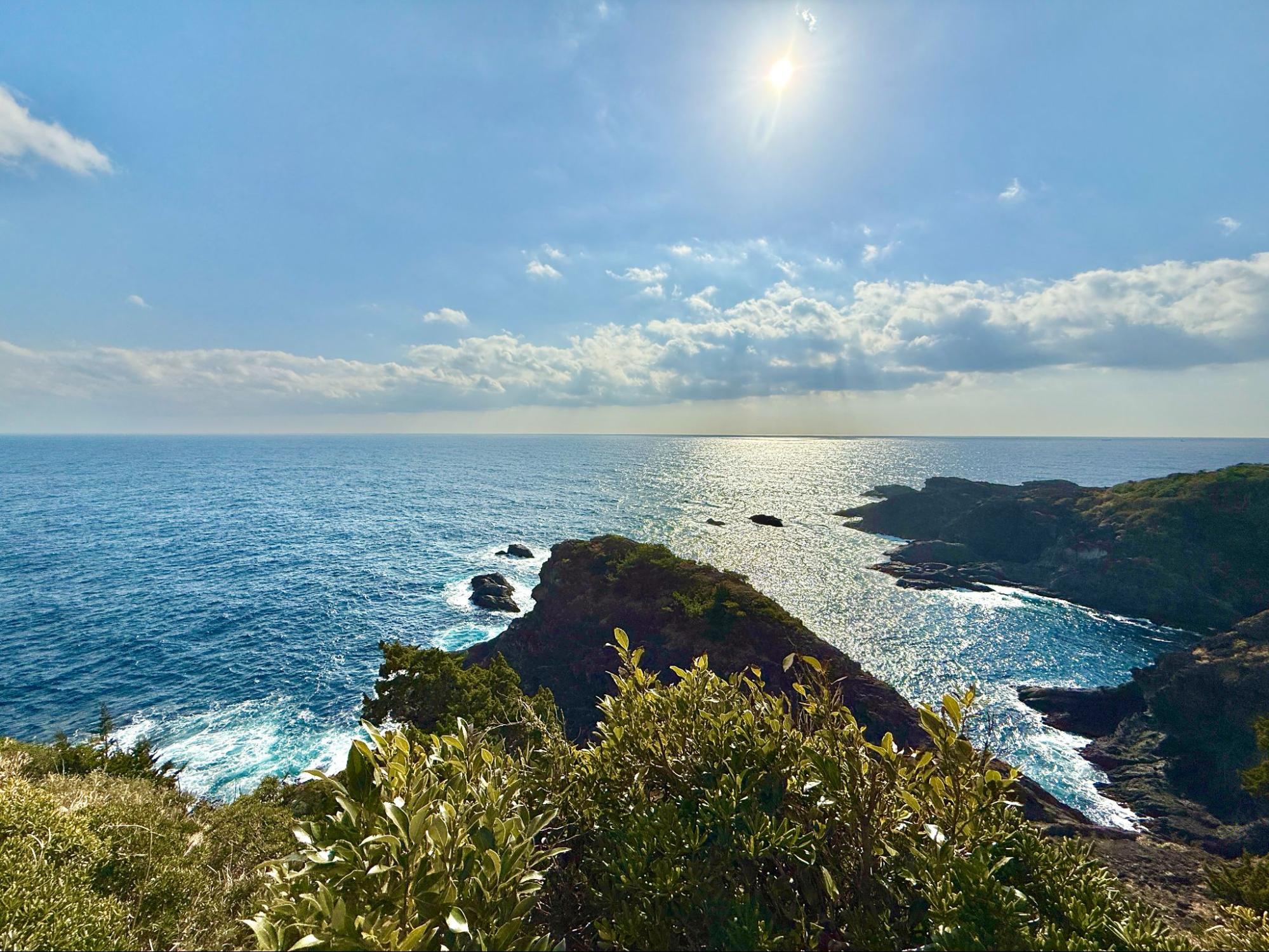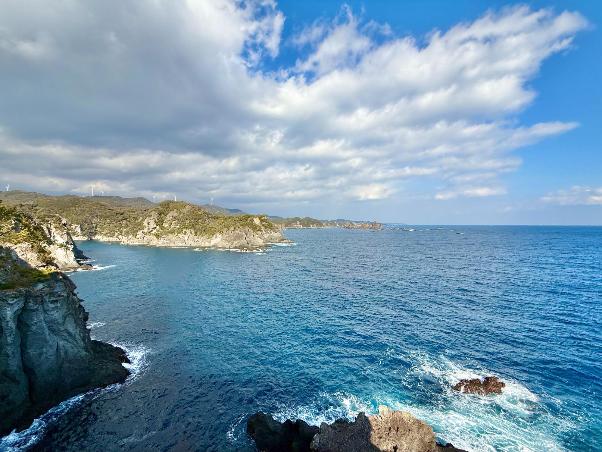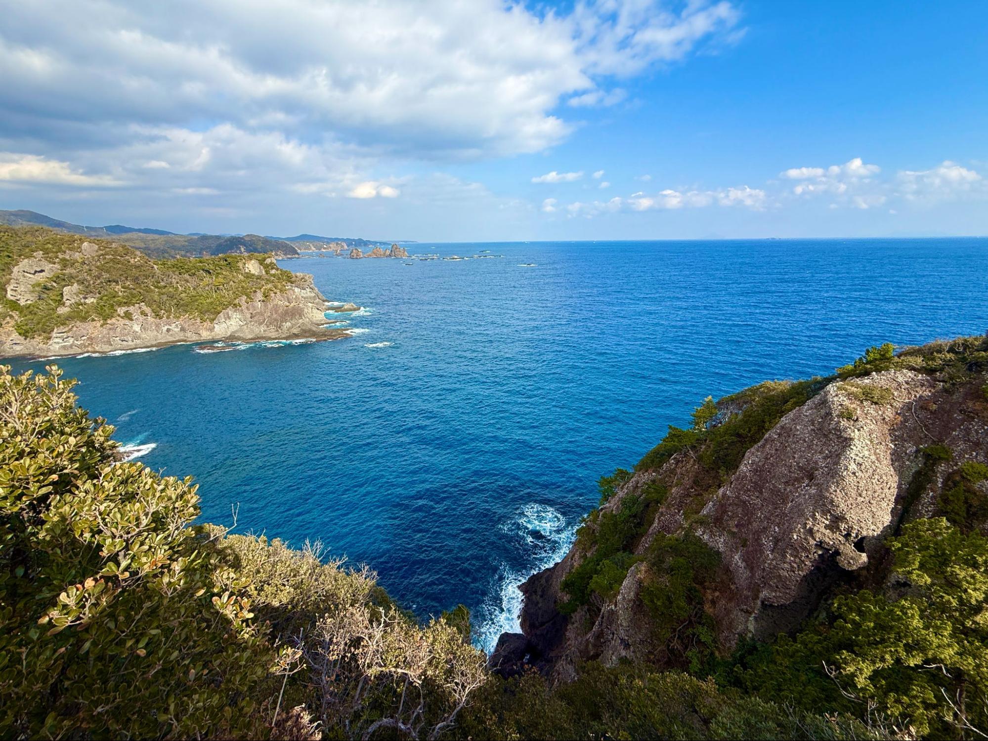觀賞著大自然所形成的地形,心境也變得開闊。海平線筆直延伸,天空沒有遮擋,心中的煩惱在這裡顯得微不足道。或許這正是南伊豆海岸線的魅力,能讓人重新調整呼吸與生活的節奏。