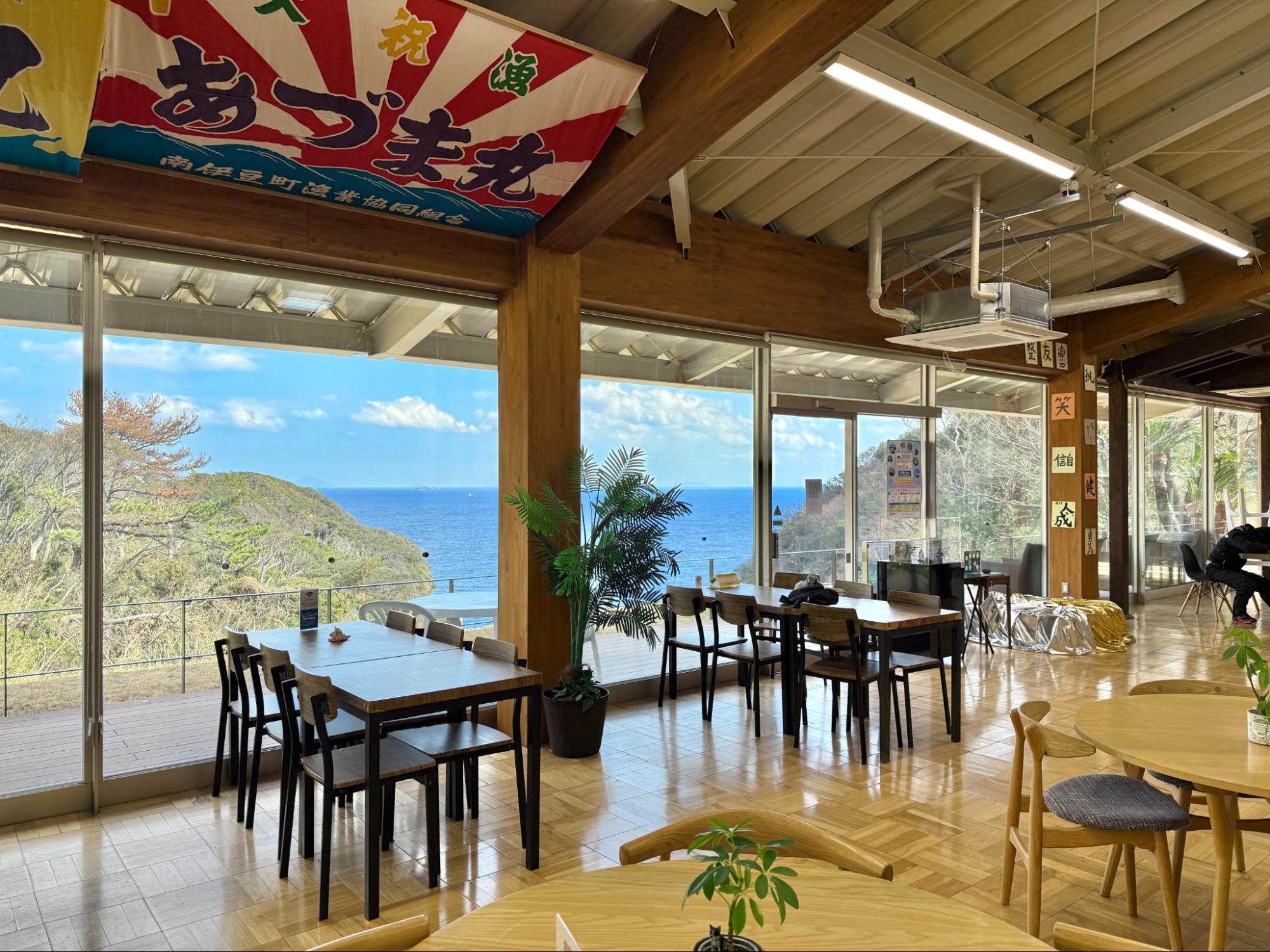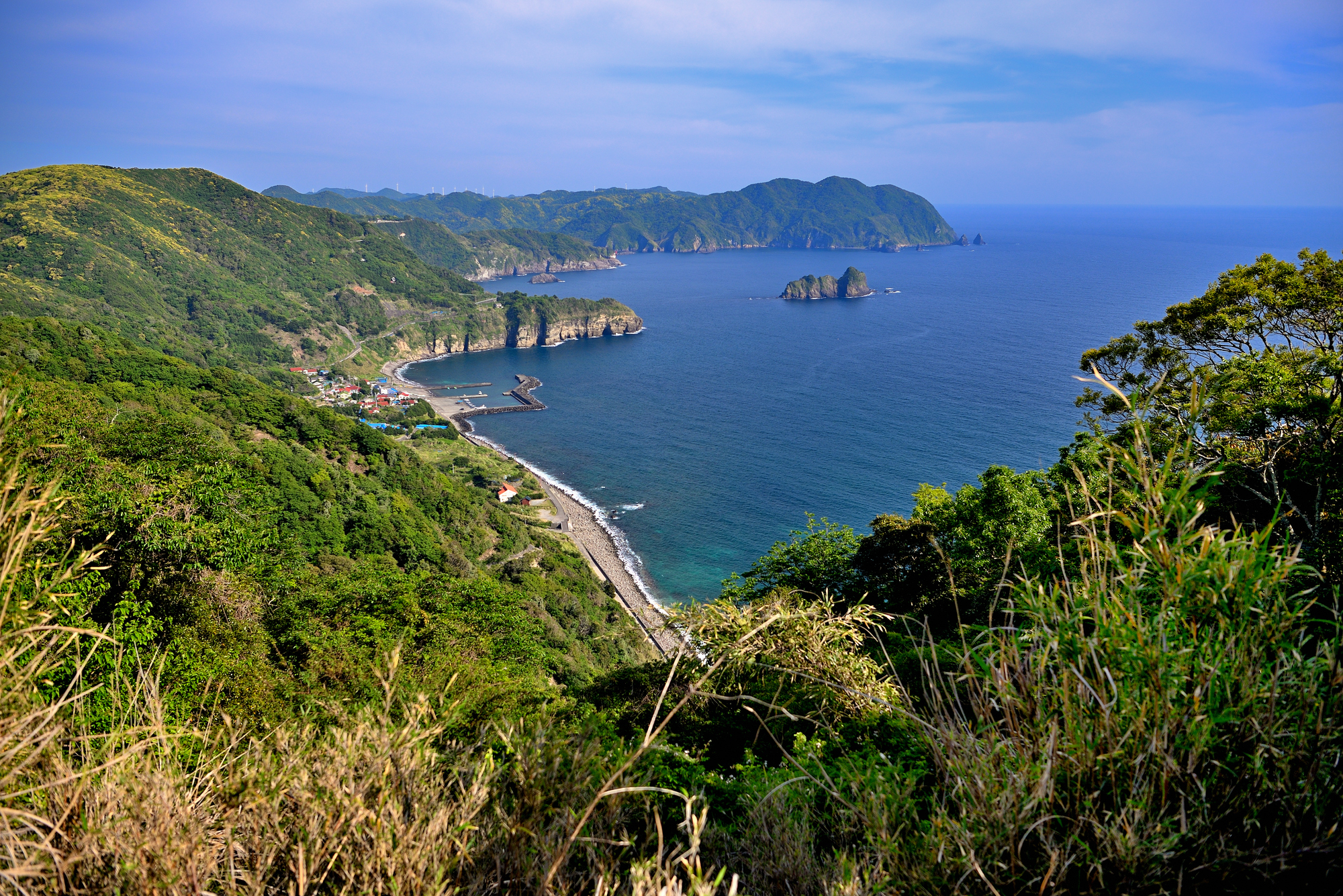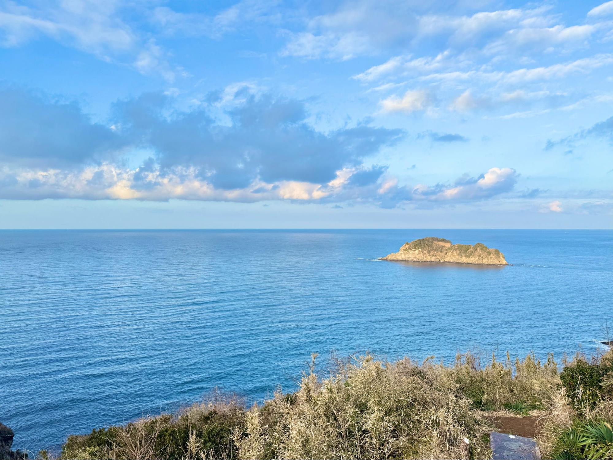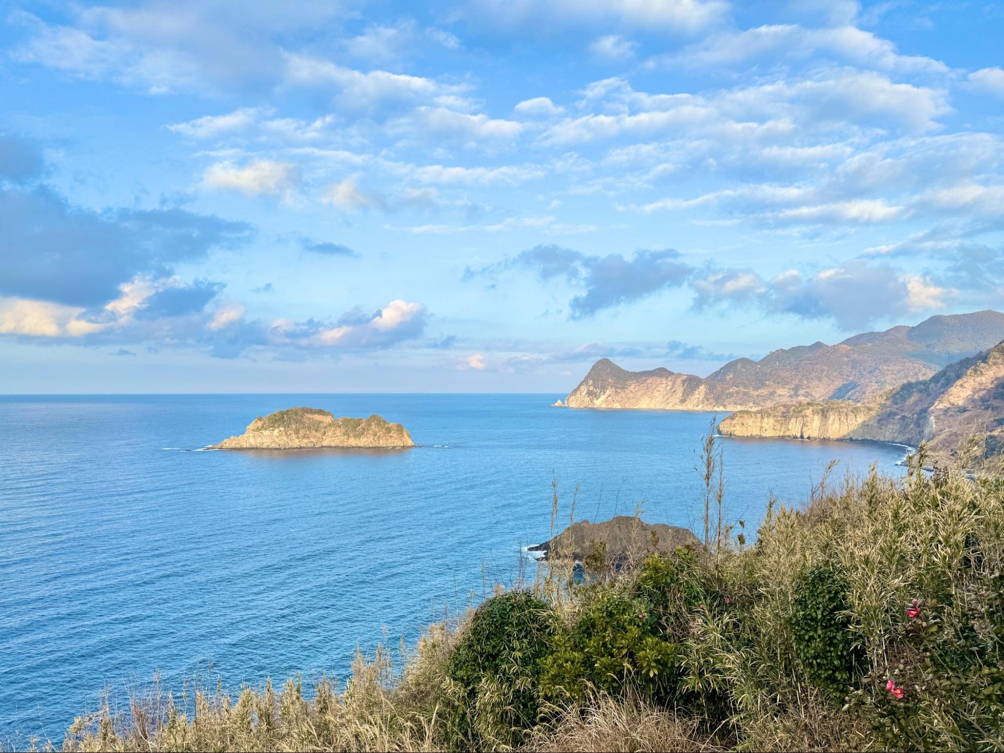 遠方海面上,能清楚看見小宇留居島與宇留井島,兩座無人島在海中央形成天然的視覺焦點,使景色不只是平面的藍,更多了一層距離與深度。
