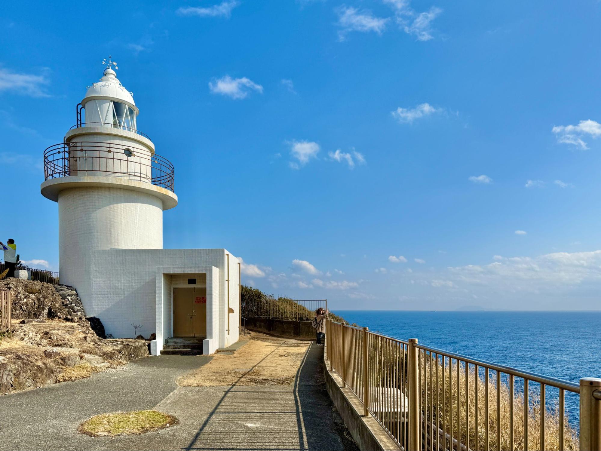 這座燈塔建於西元 1871 年(明治 4 年),由英國建築師 Richard Henry Brunton 設計,是「日本燈塔 50 選」之一。白色塔身矗立於斷崖之上,背後是遼闊的太平洋。