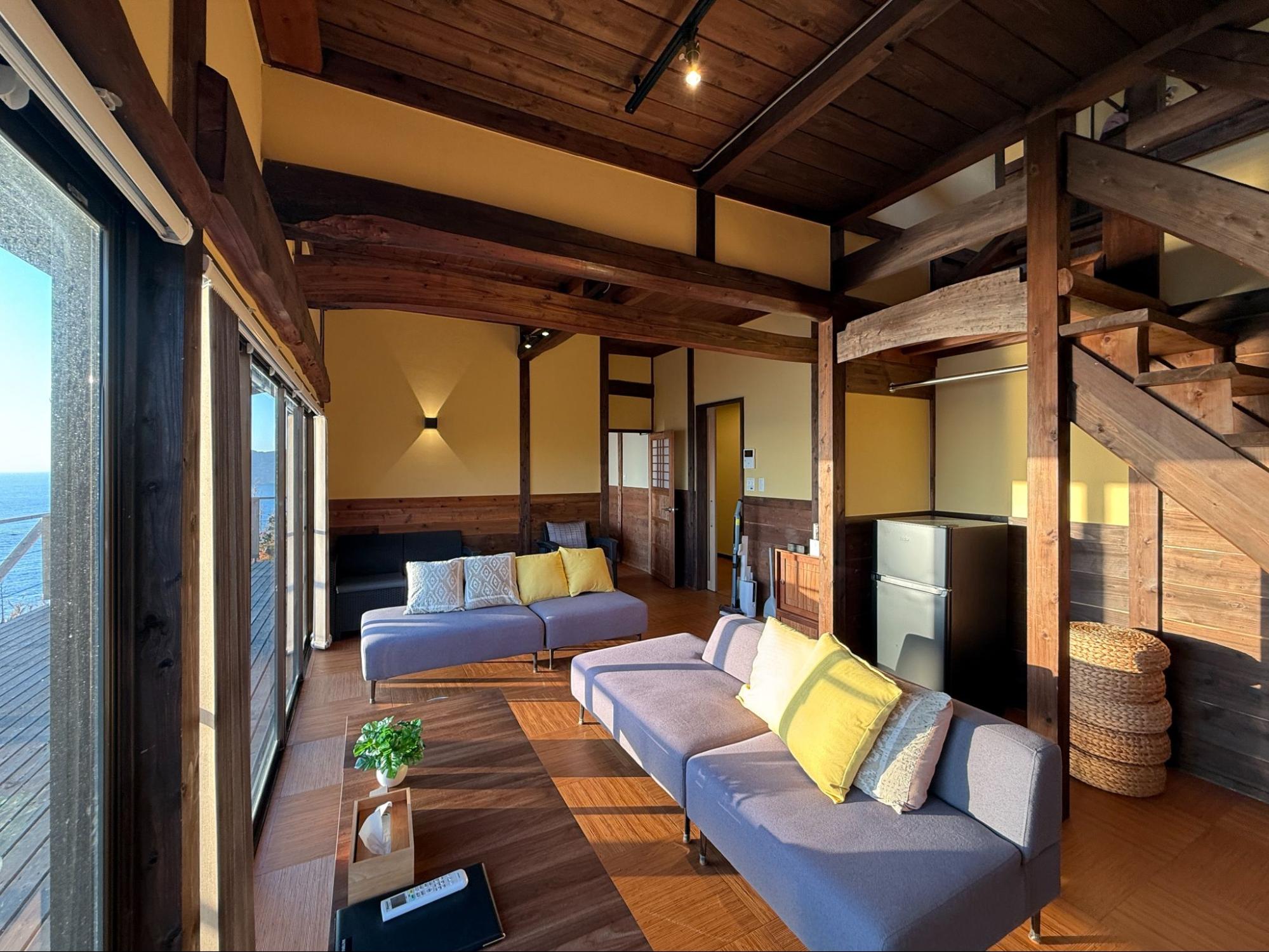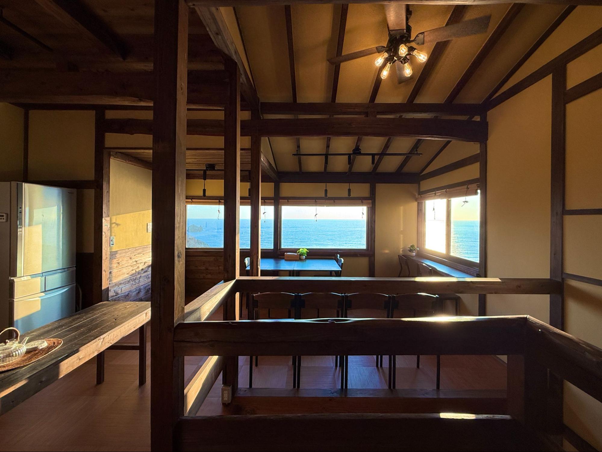 兩層樓加上一層順著地勢延伸的和式空間,以木材為主體,溫潤而沉穩。不同樓層之間的視角略有變化,但共同之處只有一個,無論站在哪裡,都能看見海。