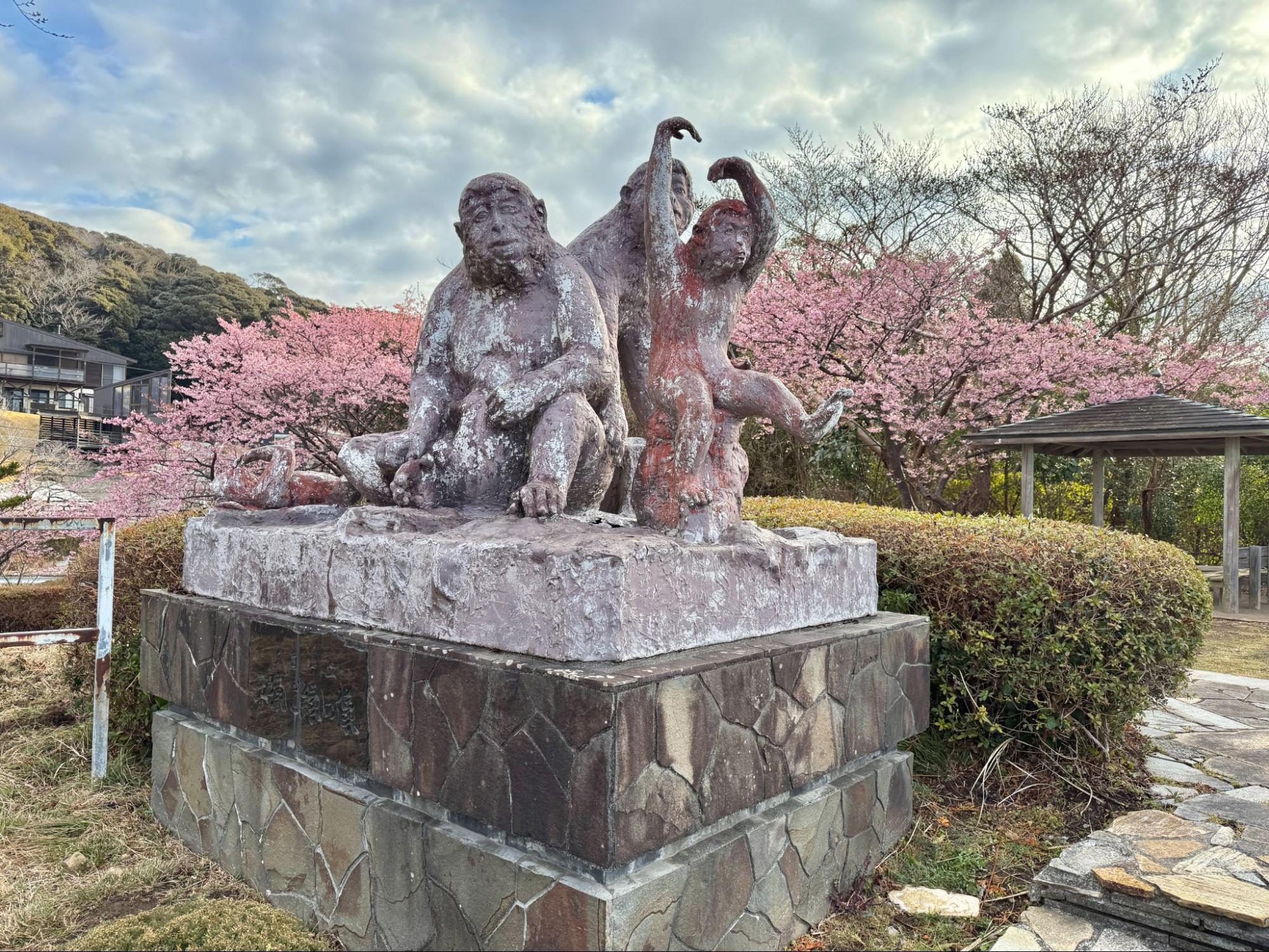 夕日之丘展望廣場|海、櫻花與猿猴的意外相遇