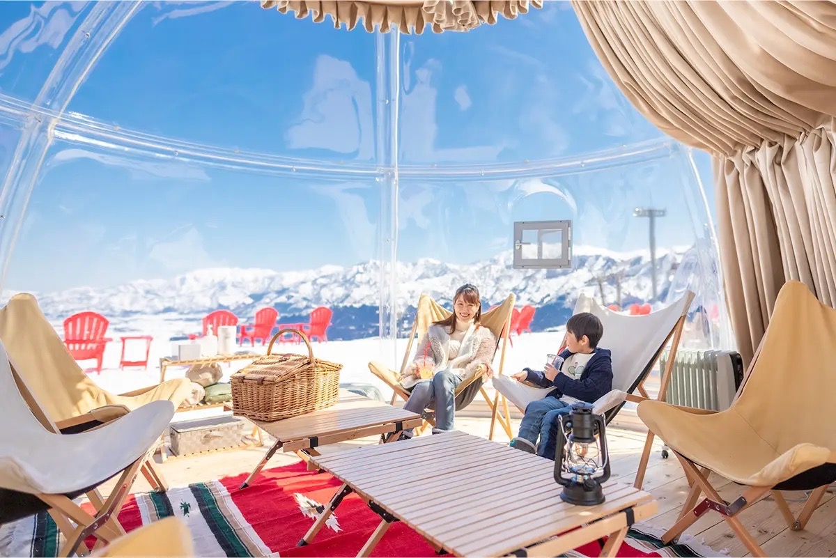 在石打丸山滑雪場的觀光體驗中,「圓頂帳篷(ドームテント)」是非常有趣的景點,適合不滑雪的旅人或想悠閒欣賞雪景的人。
