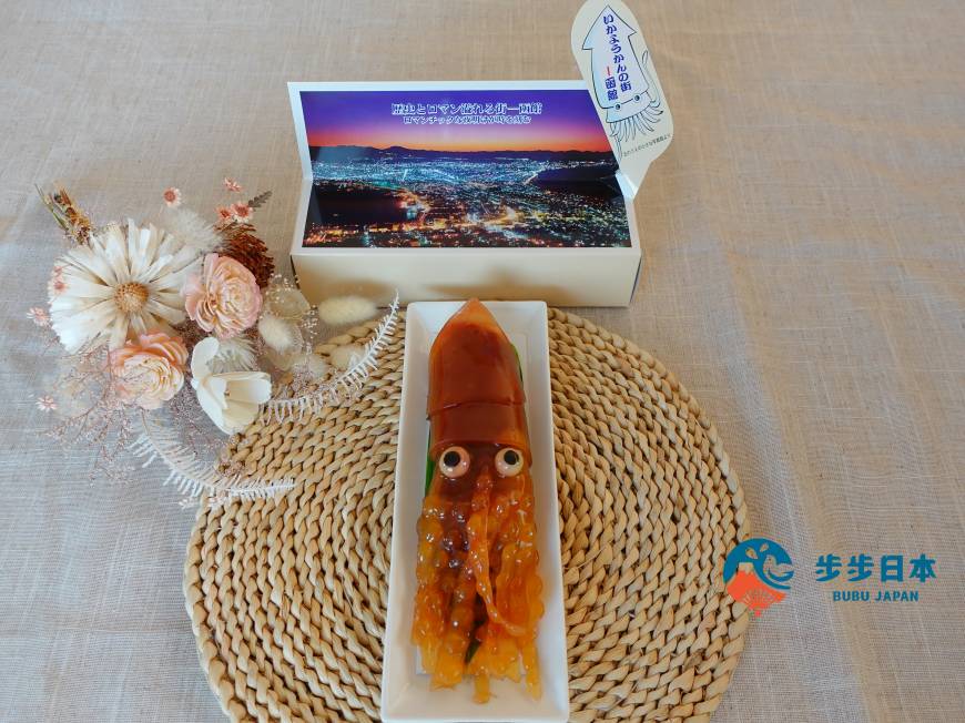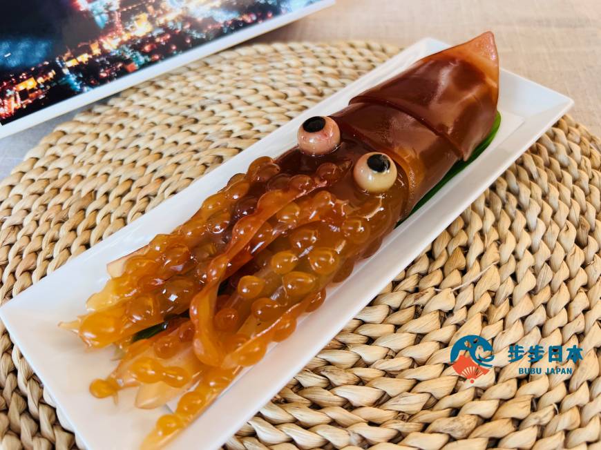 每一隻魷魚羊羹都需要耗時兩天手工製作,從色澤到觸鬚上的吸盤,就連切開後的斷面細節也完美還原,逼真得像活生生的魷魚一樣!因為做得實在太精緻,讓好多人都大呼「捨不得吃」。擬真的外表,絕對是函館伴手禮中的第一名!由於一天只限量發售 50 盒,建議提前預訂,以免買不到喔!