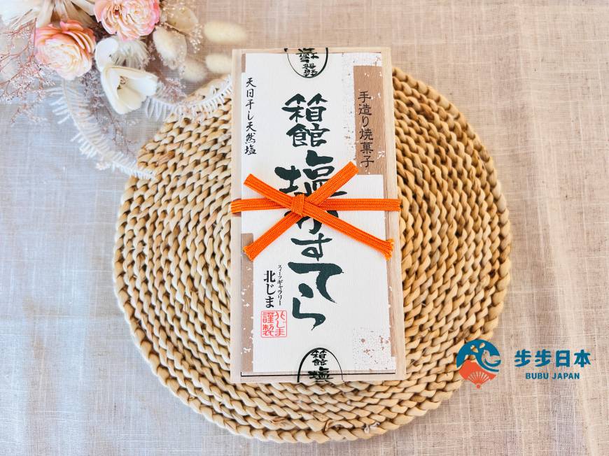 來自木古內町的「箱館鹽味蜂蜜蛋糕(箱館塩かすてら)」嚴選北海道小麥與道南產的新鮮雞蛋製作,蛋糕體口感濕潤且富有層次。更加入了美味的秘密「日曬海水結晶鹽」作為提味,反而更加襯托出蛋糕的香甜!