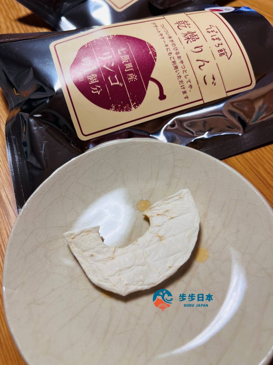 POPORO 館(ぽぽろ館)位於距離函館車程約 30 分鐘的七飯町。「乾燥蘋果乾(乾燥リンゴ)」使用七飯產蘋果,經過 8~10 小時細心低溫乾燥製成。每一包約使用一顆蘋果製成,無任何添加物及防腐劑,大人小孩都能安心享用!除了可直接當零食吃以外,也可加入優格,或者以清水泡軟後,加入檸檬汁或蘭姆酒,再用於製作鬆餅、蛋糕等甜點,多種用途,CP 值超高!