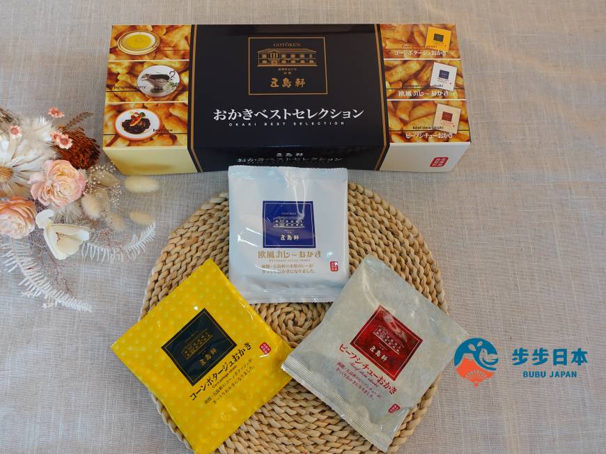 五島軒是創業近 150 年的函館老字號洋食餐廳,其中的各種咖哩更是五島軒的招牌料理。北海道製菓株式會社與五島軒合作的精選綜合米菓,除了最人氣的「 歐風咖哩米菓(欧風カレーおかき)」,還有「玉米濃湯米菓(コーンポタージュおかき)」「紅酒燉牛肉米菓(ビーフシチューおかき)」,一次滿足三種口味!