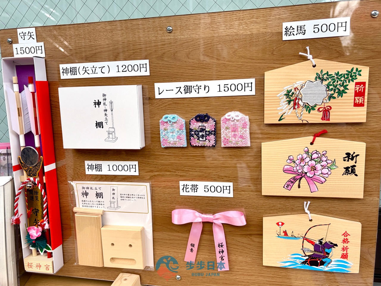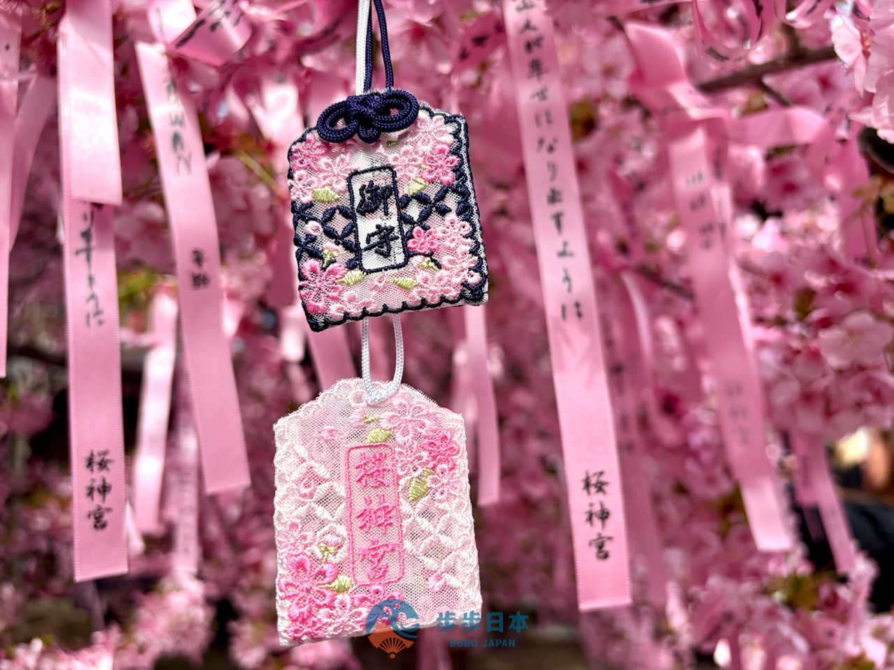 最有人氣的授與品之一,莫過於繫滿櫻花樹的「結緣花帶(えんむすびの花帯)」。將寫下願望的粉紅緞帶繫在樹梢,微風吹拂,粉紅緞帶與櫻花一同飄動,浪漫指數爆表!這裡的「結緣」不僅限於愛情,也包含工作、學業與求子等各種良緣喔!