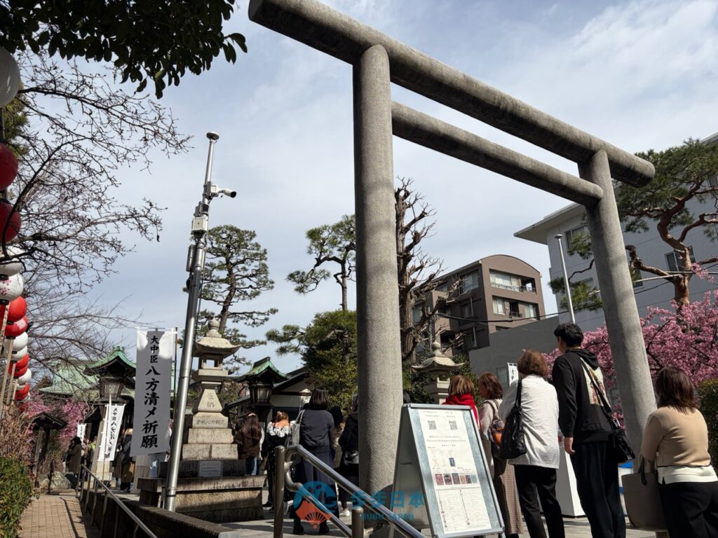 若是在櫻花盛開的旺季前往,由於人潮眾多,為了維持參拜的流暢與對神靈的禮貌,建議遵循「先排隊參拜、後排隊領取」的原則。請先完成心誠則靈的參拜後,再去排隊領取心心念念的限定御朱印與蕾絲御守喔。