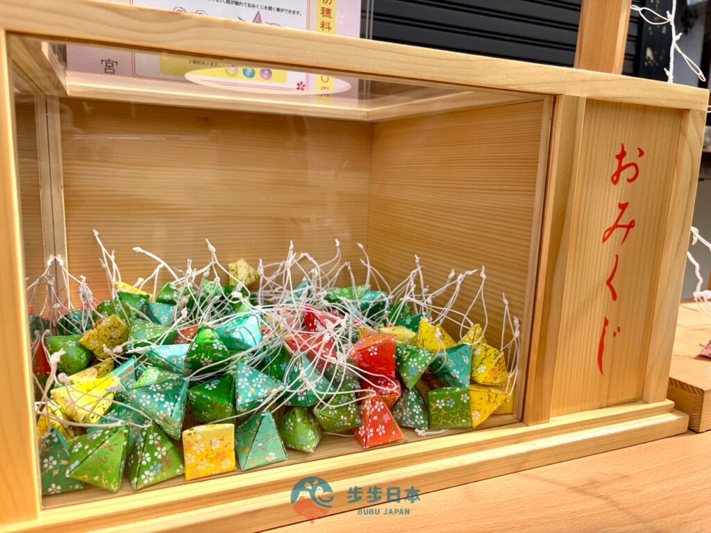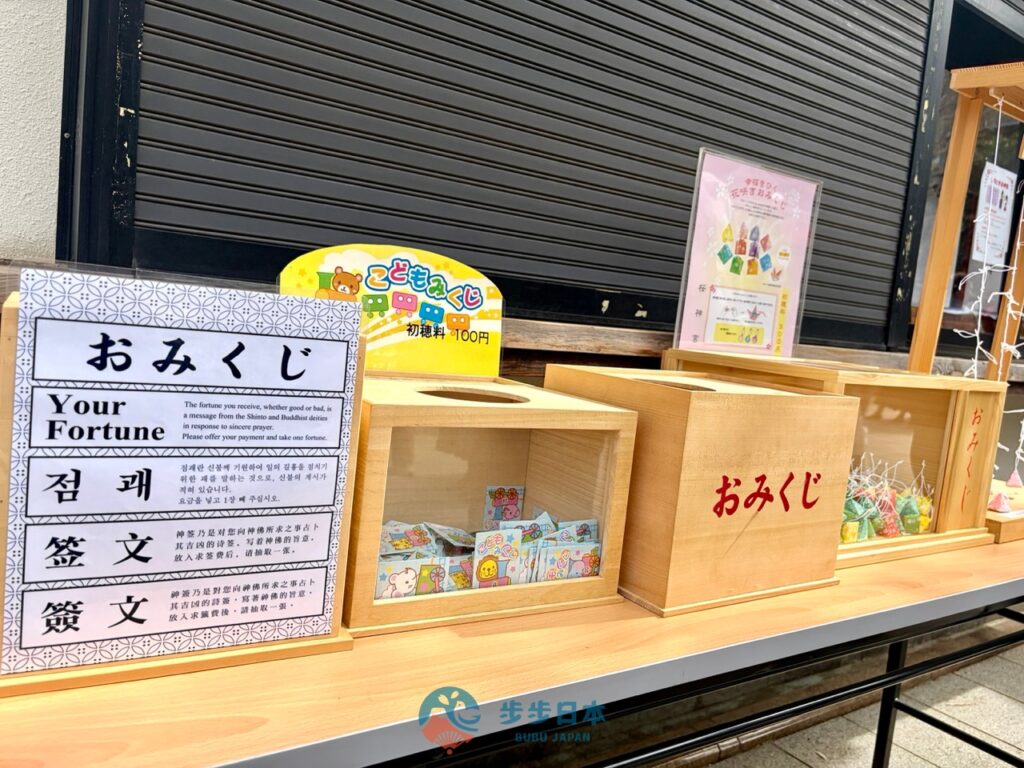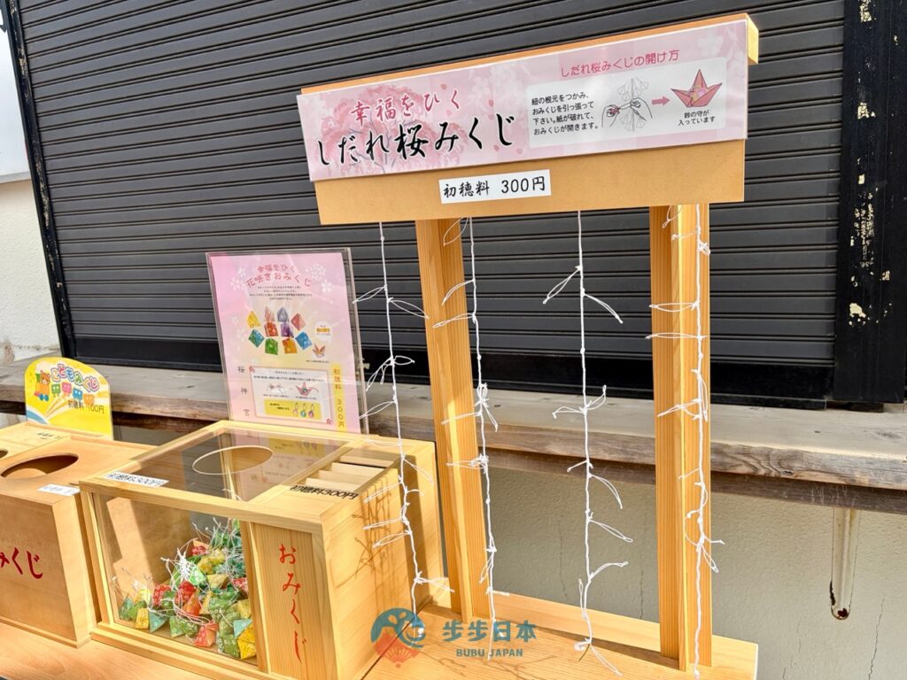 櫻神宮的御神籤款式有 4 種,其中的「花開神籤(花咲きおみくじ)」、「枝垂櫻神籤(しだれ桜みくじ)」,打開神籤,裡面還會附贈一個精緻的鈴鐺小御守,聲音清脆悅耳。