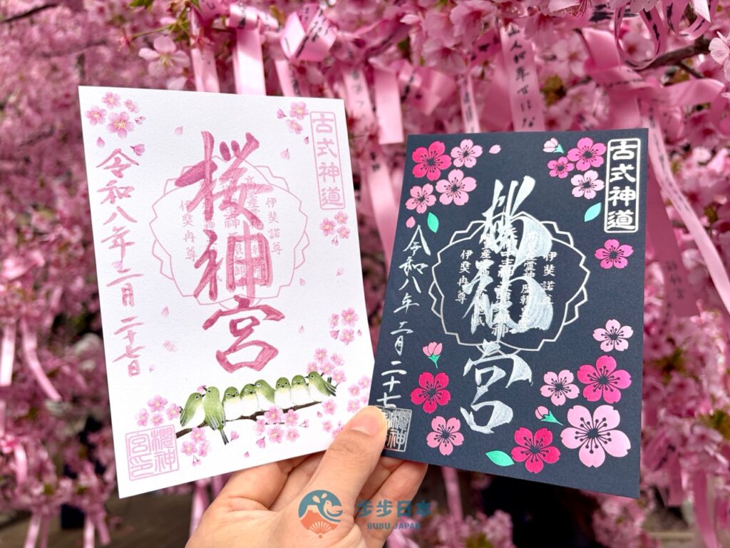 櫻神宮的御朱印風格清新、設計感強,依照季節、月份、節日限定的御朱印,如:櫻花季、紫陽花季、七夕、萬聖節、聖誕節⋯⋯等,每年都有新設計,是許多御朱印愛好者清單上的必朝聖之地。
