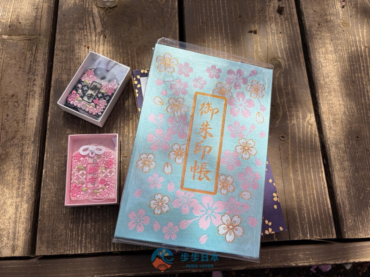 如果想給御朱印一個完美的家,這裡的原創御朱印帳也非常推薦,深藍、白色與天空藍三款,封面布滿精緻的櫻花設計,既典雅又耐看。也有販售配套的御朱印帳收納袋。
