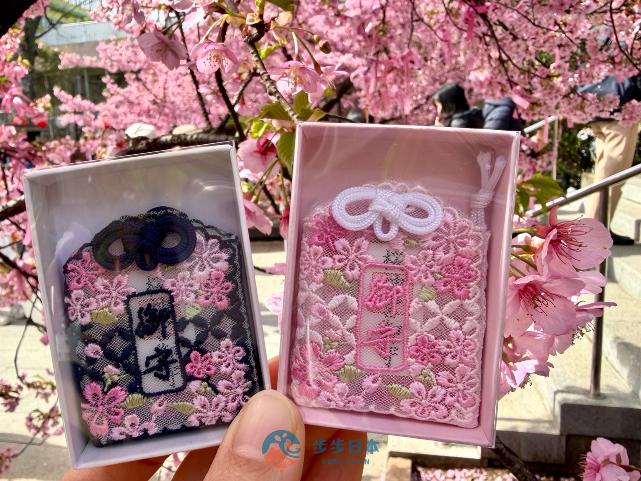 除了最受歡迎的夢幻粉色外,充滿質感的「天空藍(空色)」與「深藍色(紺色)」,為優雅的蕾絲設計增添了些許沉穩的感覺。御守人氣居高不下,如果你也是御守控,這款能隨身攜帶的櫻花浪漫,絕對值得你為了它早起排隊。