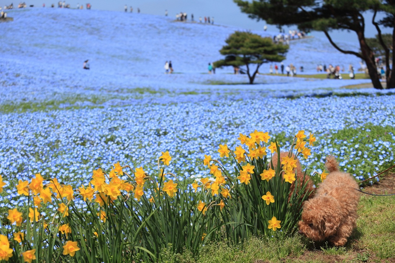 國營常陸海濱公園最具代表性的春季絕景,就是位於見晴之丘約 450 萬株粉蝶花(ネモフィラ)所形成的夢幻藍色花海,每年 4 月中旬至 5 月上旬為最佳觀賞期。
