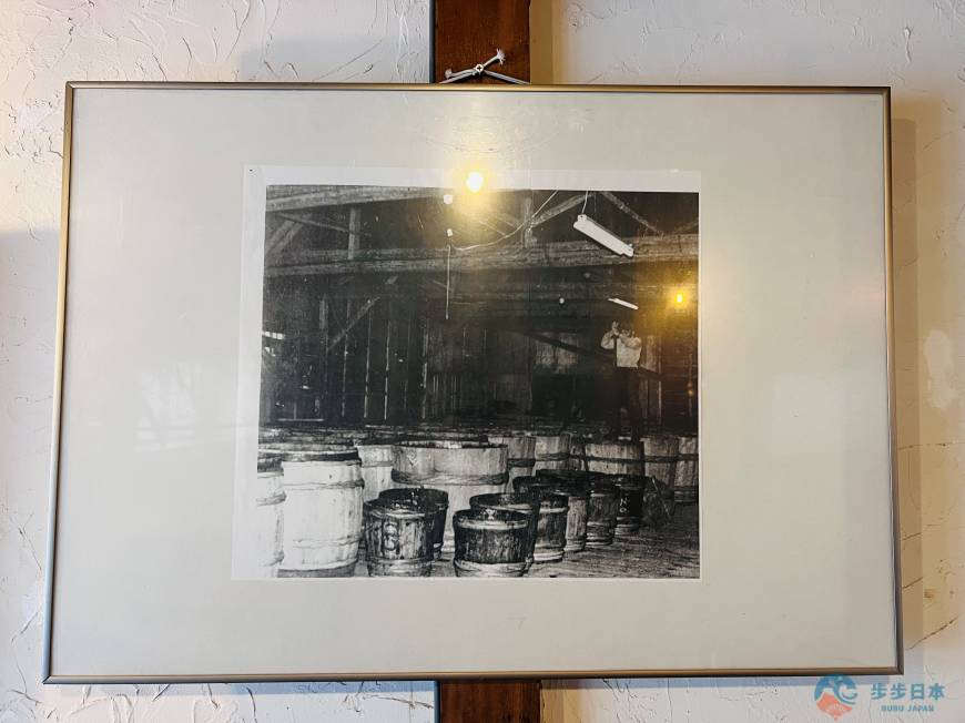 上圖中的海報,是由第二代社長小田島喜一郎,於戰後不久親自設計的海報。當時塑膠容器尚未普及,鹽辛都是以小型木桶裝盛,並從這裡運往日本各地販售。