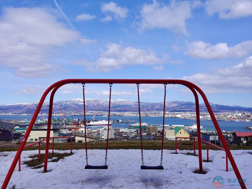 不過,抵達公園後看到的景色,以及坐上面向大海的紅色「天空盪鞦韆」,輕輕一盪,彷彿伸手便能觸及天空與大海,函館的海港風景更是一覽無遺,相信剛剛的疲勞會一掃而空!