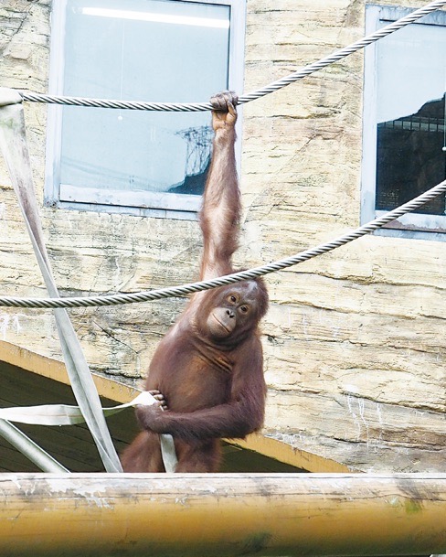 原本僅棲息於東南亞婆羅洲島的婆羅洲猩猩,是類人猿中僅次於大猩猩的大型品種。野生的婆羅洲猩猩會棲於樹上,為此園方設置了許多高台。
