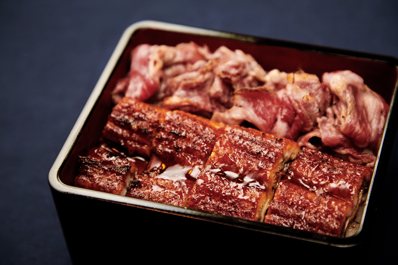 我吃的是「う乃屋」的牛肉和鰻魚同時端上一膳的奢華料理。味道無可挑剔。