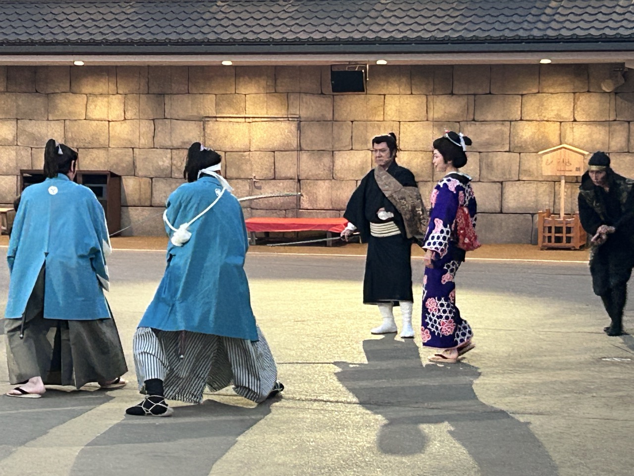 村子裡有即時上演的戲劇。因為時間關係,我沒能完整看完全部,但當殺陣的場景在眼前展開時,心裡湧起一股難以言喻的感慨。只存在於電視裡的東西,就在眼前。不是隔著螢幕,而是在同一片空氣中,刀劍正在交錯。