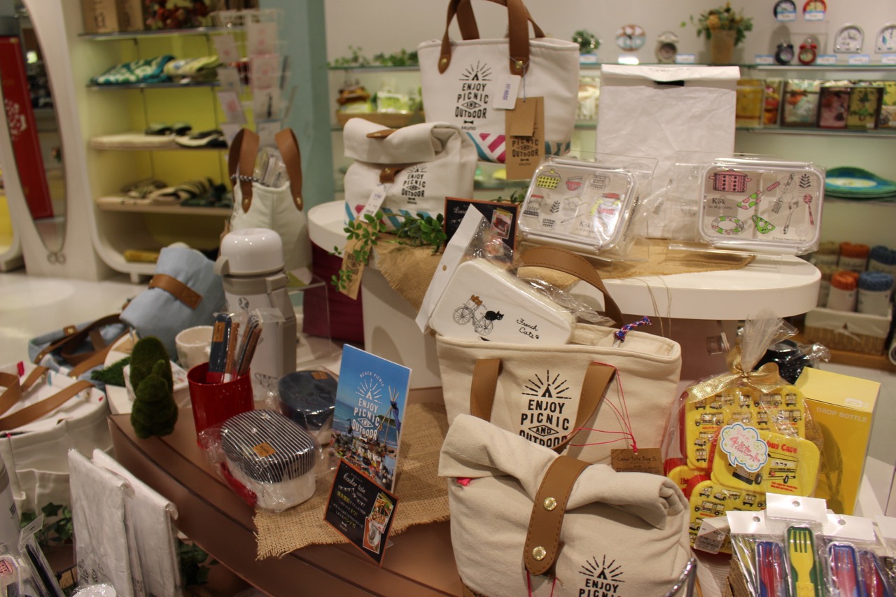 喜歡日本日常生活小物件的朋友,別錯過一樓的美妝產品與雜貨專櫃。這裡會依照季節,更換主題陳列產品。例如適合野餐的季節,這裡就能找到很多出門野餐時,可以用到的便當等產品。還有經常下雨的季節,從雨衣到雨鞋、雨傘,各種形式的雨具,其實也很適合帶回常下雨的台北。