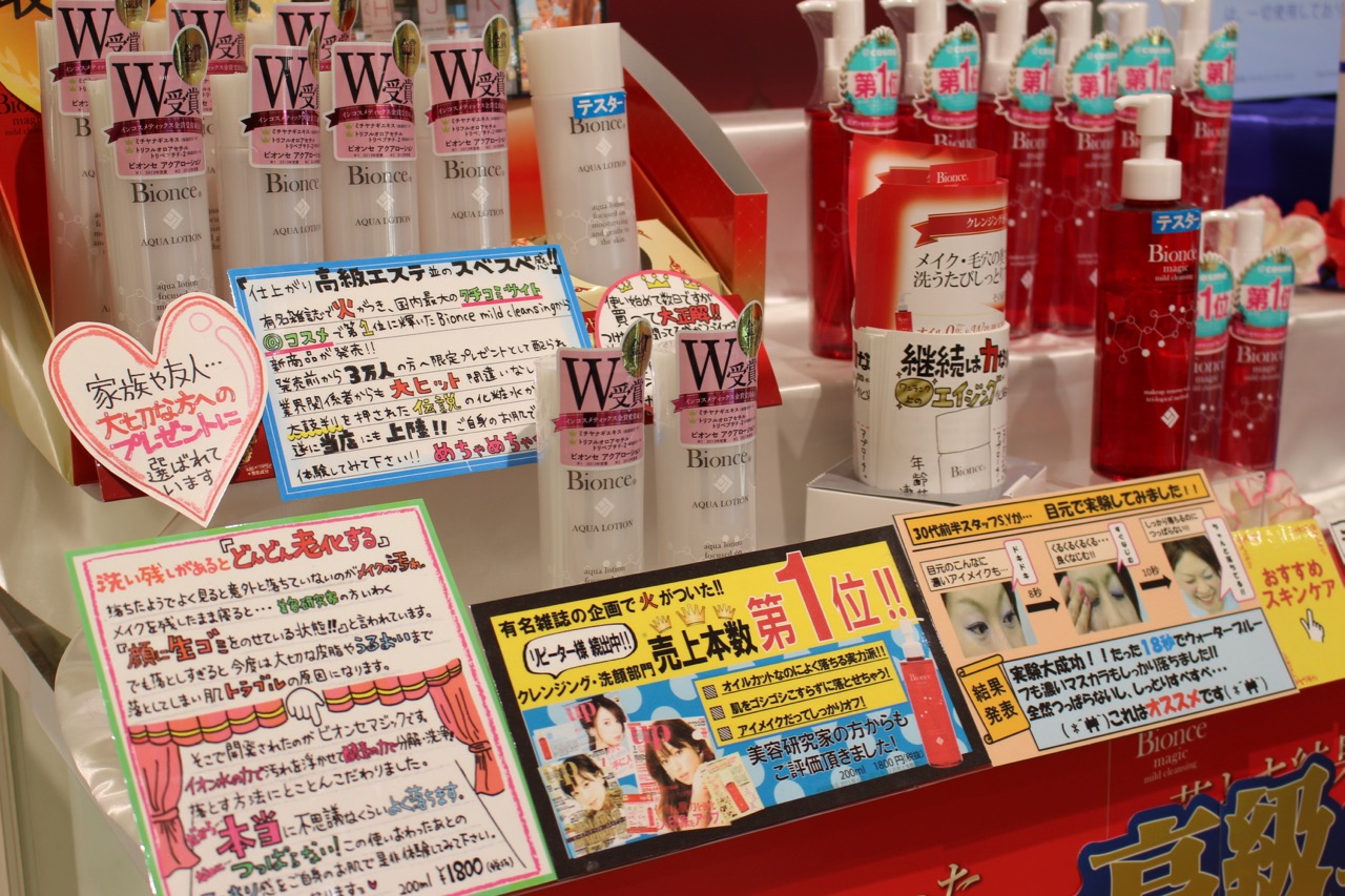 美妝產品有店員特別推薦的暢銷排行榜,所以如果不知從何下手的話,可以參考看看銷售最高的幾樣產品,是否值得下手?美妝產品旁是香水專櫃,男女香水都有。而想買內衣褲或帽子的人,就在面對一樓入口不遠處,就設有專櫃,離開前別忘了也去看看,說不定恰好就有物超所值的好貨喔!