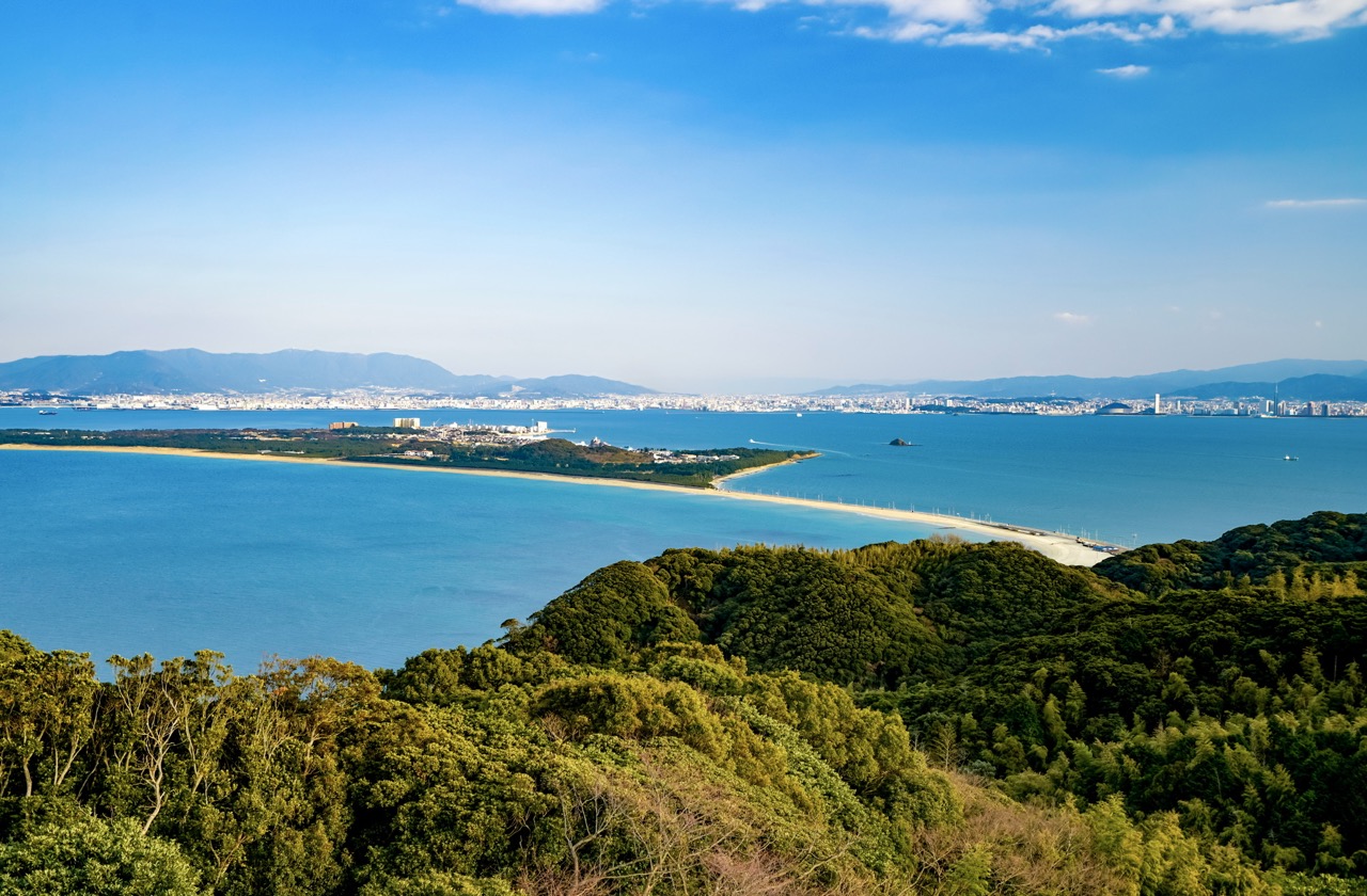 志賀島是座與福岡市區相連的小島,透過狹長的海之中道與本島相接,最大的特色是三面環海,可以同時看到博多灣與玄界灘兩側的海景。