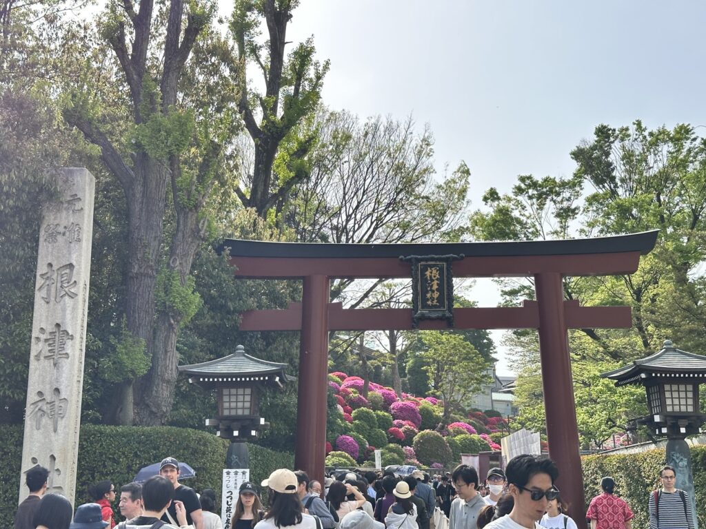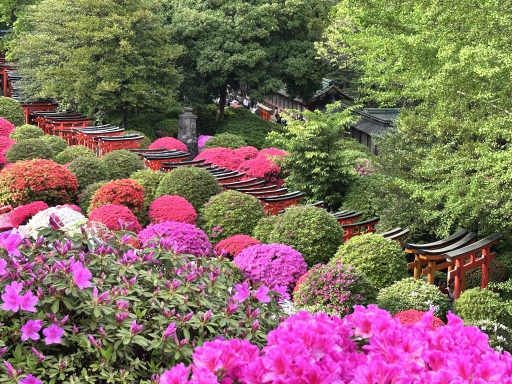 根津神社是東京賞杜鵑花的名所之一。神社境內有約兩千坪的杜鵑花園,每到四月上旬至五月上旬為止,每年舉辦的「文京杜鵑花祭」都吸引大批人潮前來賞花。週末還有太鼓等相關活動。